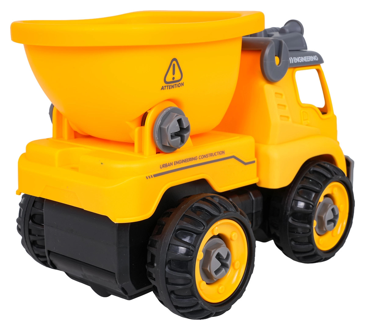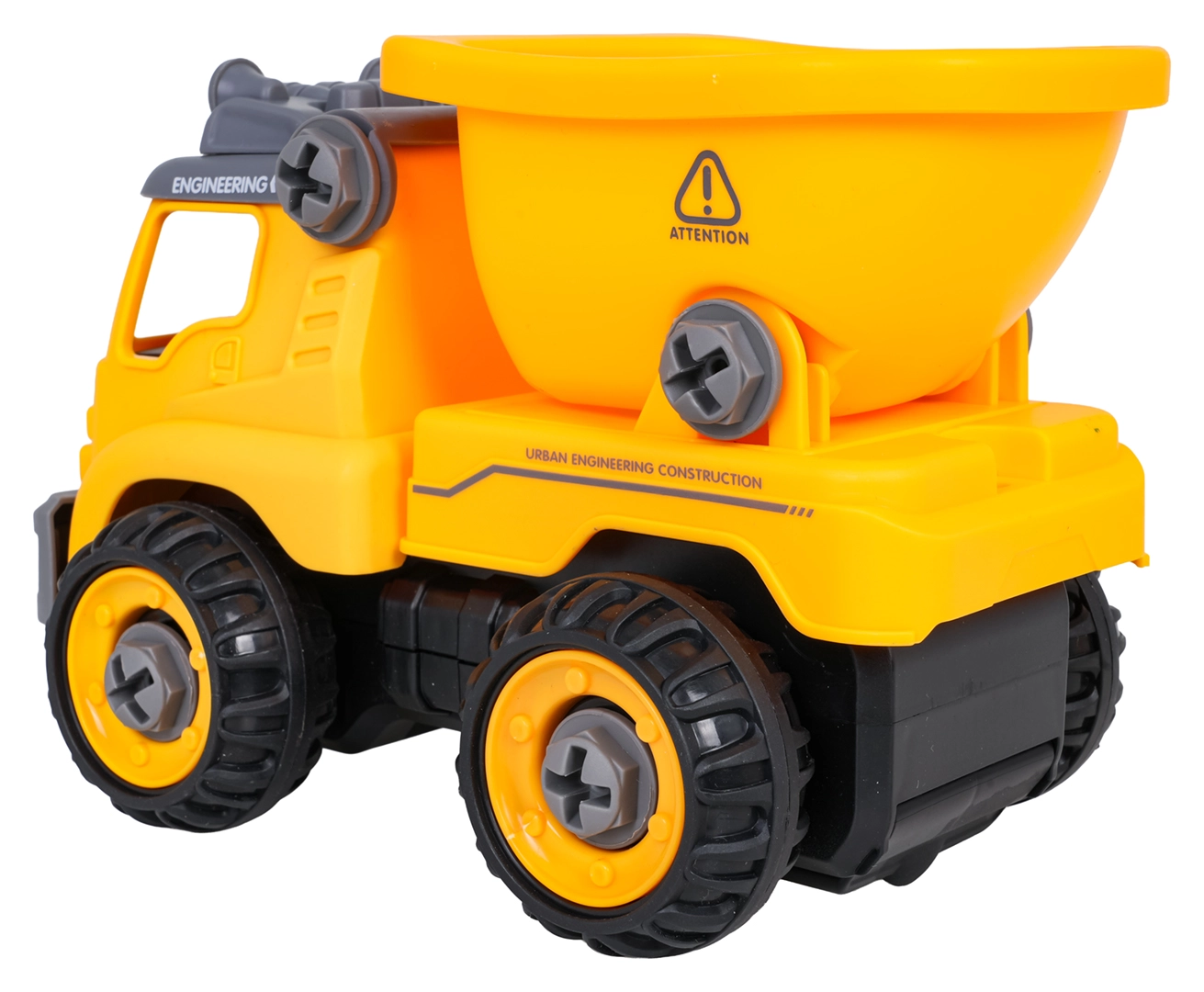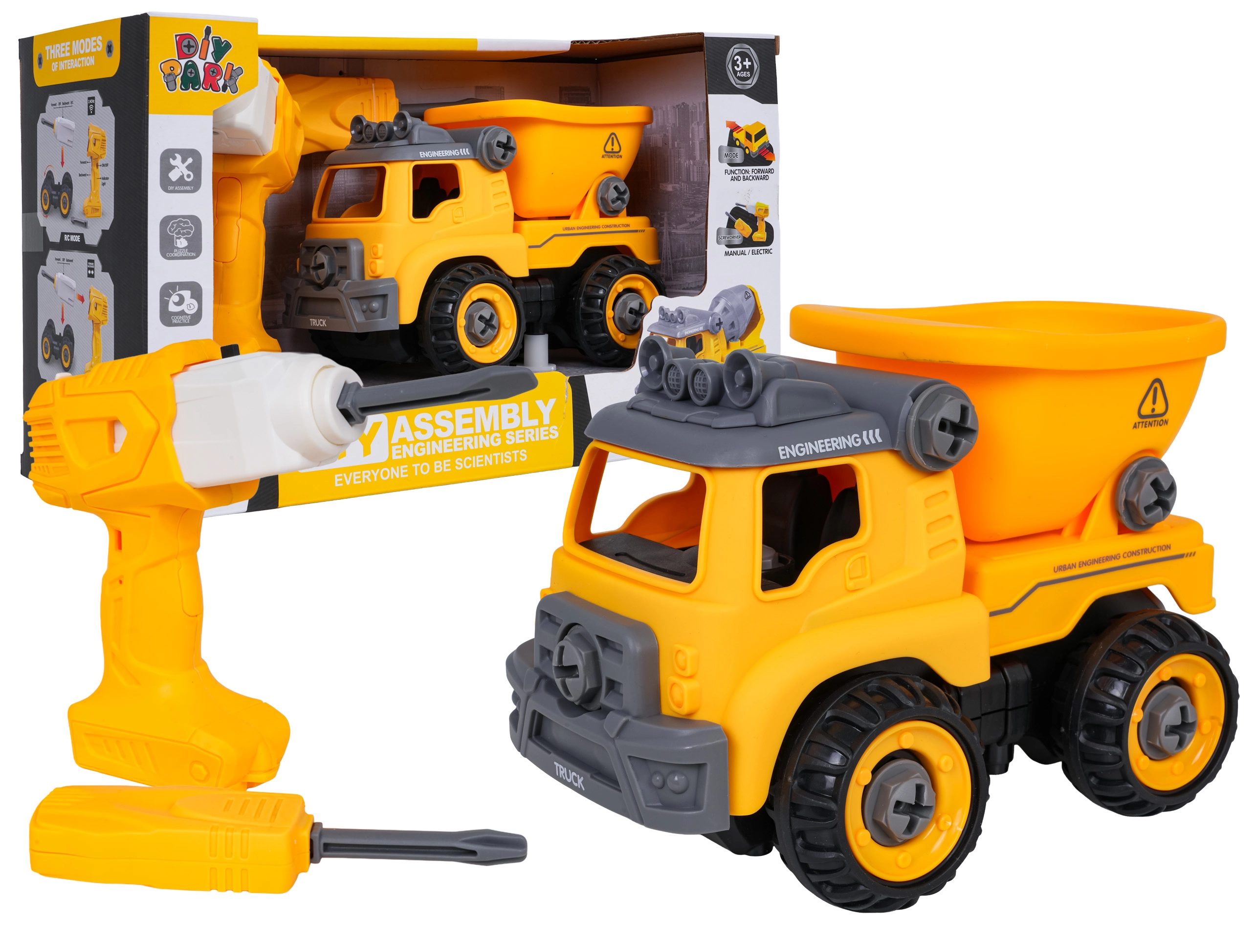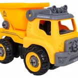 Zabaven razstavljiv gradbeni tovornjak za otroke od 3 let z baterijskim vrtalnikom in ročnim izvijačem. Otroci lahko vozilo preprosto razstavijo in ponovno sestavijo, pri čemer vadijo fino motoriko, logično razmišljanje in kreativnost. Po vstavitvi krmilne plošče se avto sam premika naprej in nazaj, ne manjkata prekucna kesonska korba in odpirajoča se streha.