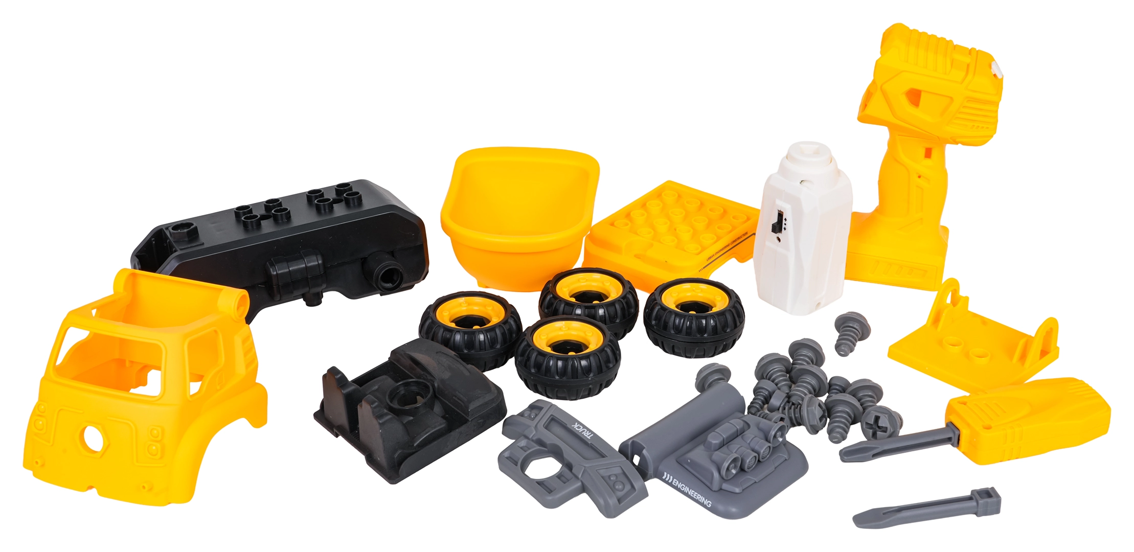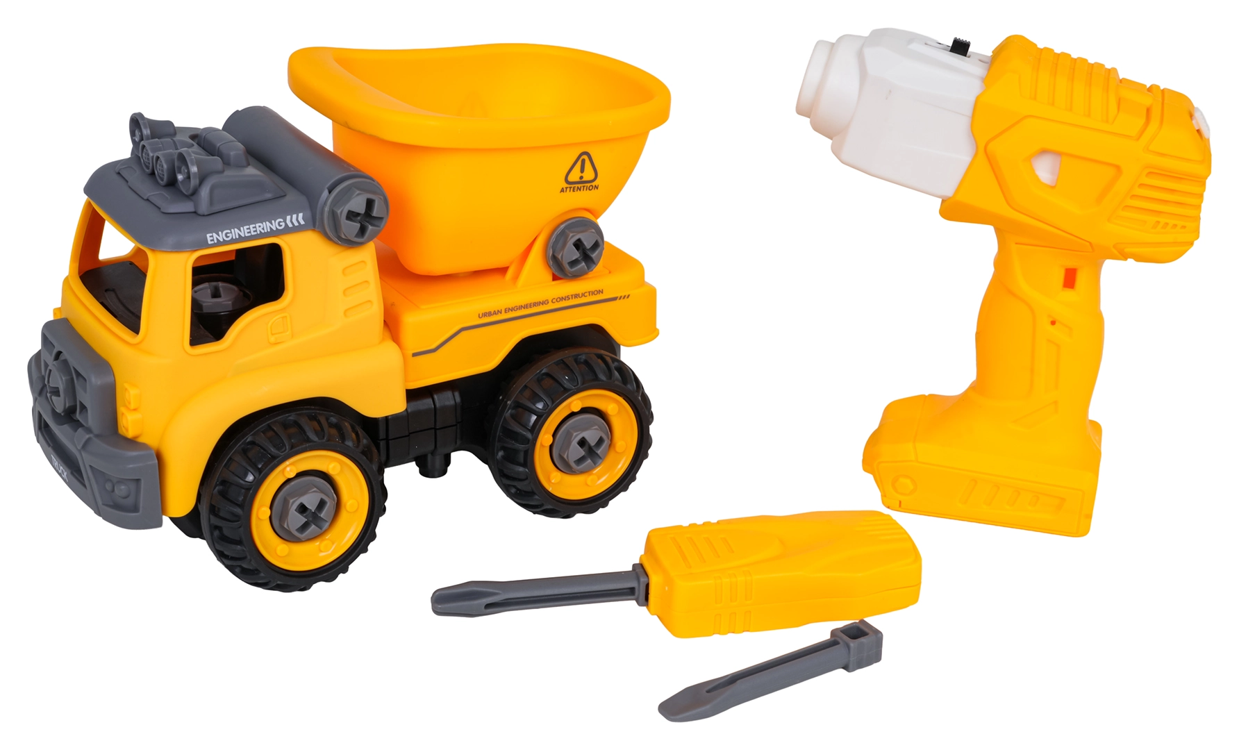 razstavljiv gradbeni kiper z vrtalnikom in izvijačem