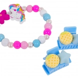 Odkrijte igriv komplet nakita s samorogom, ki združuje pisane kroglice, perlice in usklajene lasne dodatke. Raztegljiva zapestnica se zlahka natakne, sponke zanesljivo držijo nežne pramene, celoten komplet pa je odličen za vsakodnevno lišpanje in praznične trenutke.