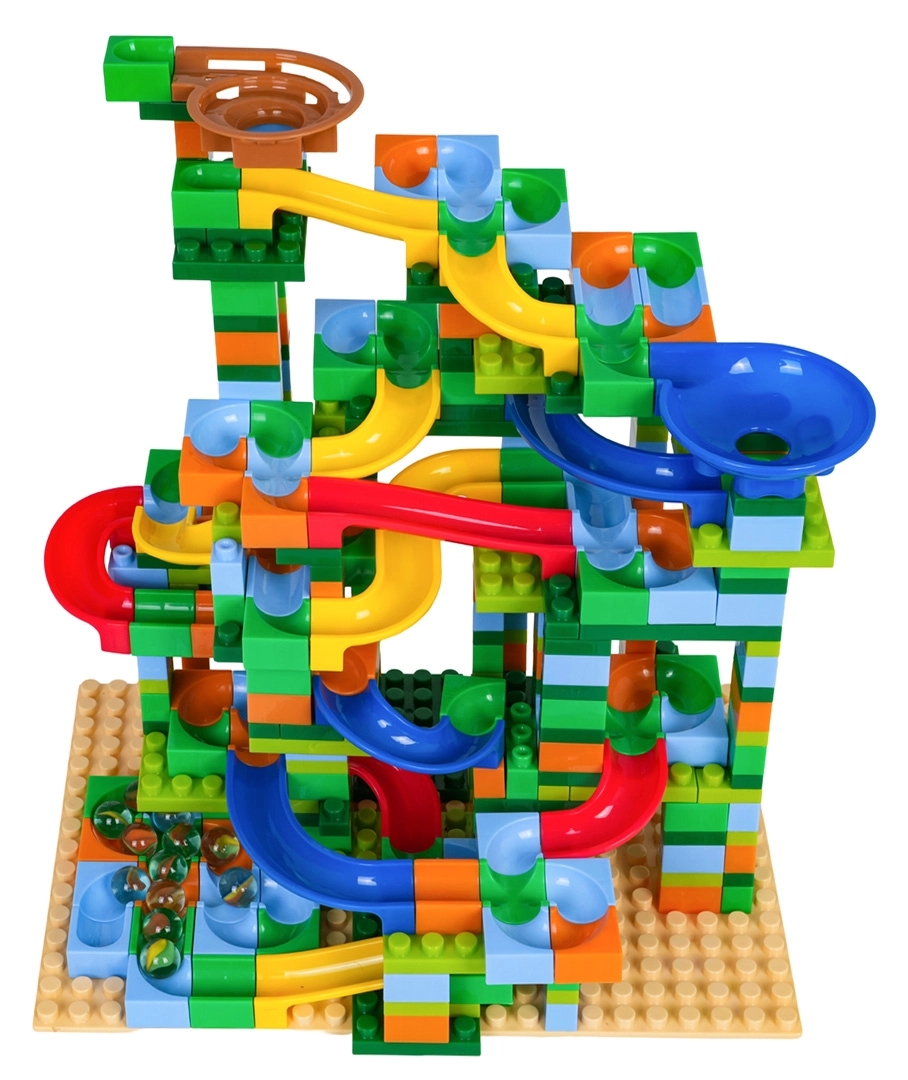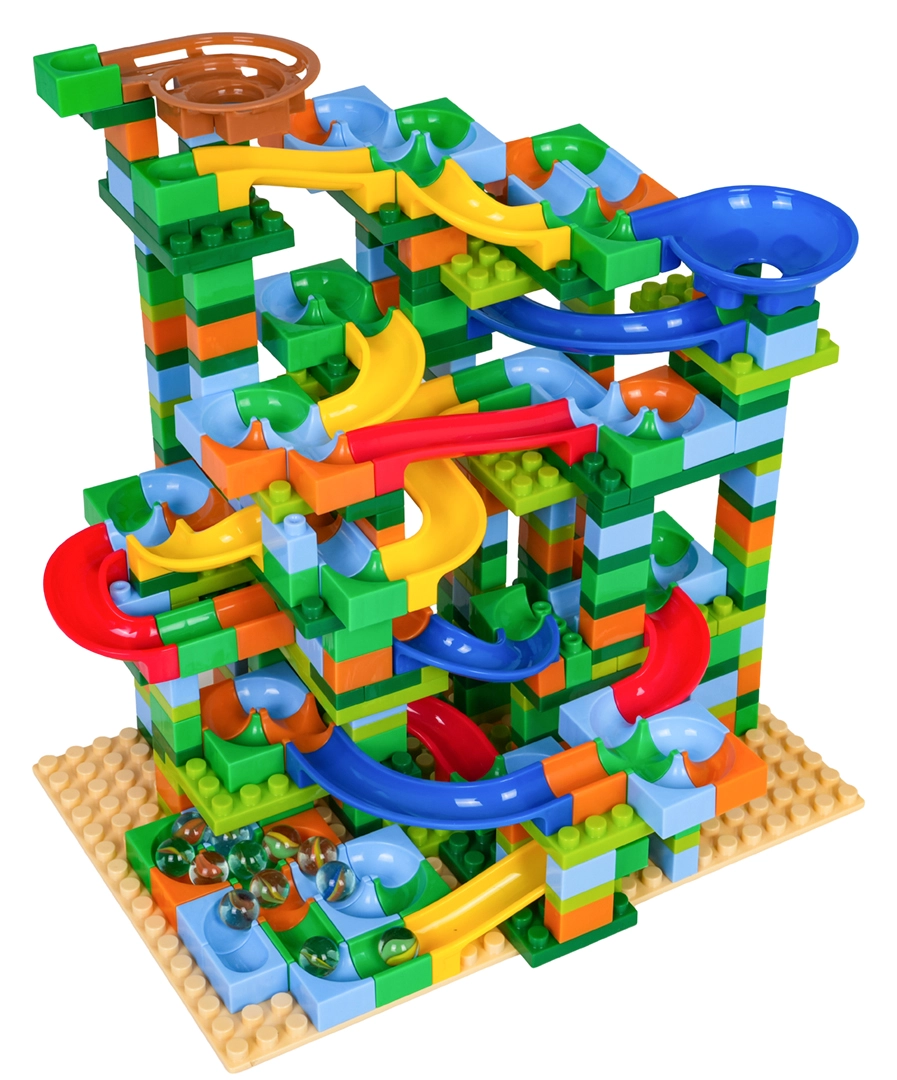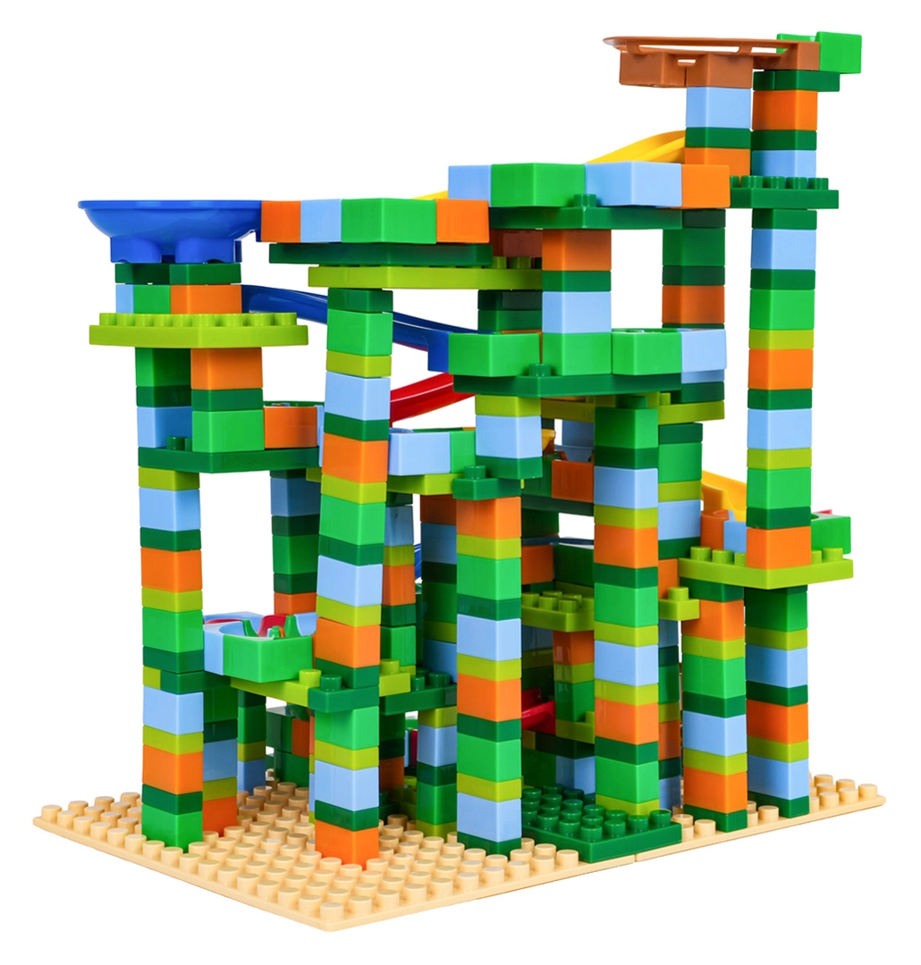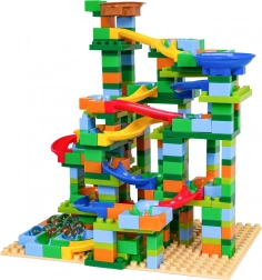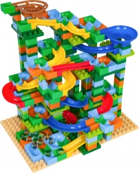 Sestavite svojo barvito kroglično progo in opazujte, kako kroglice drsijo skozi ovinke, lijake in spuste. Z bogatim kompletom 402 elementov boste zgradili nešteto različic, otroci pa naravno urijo koordinacijo roka–oko in logično razmišljanje.