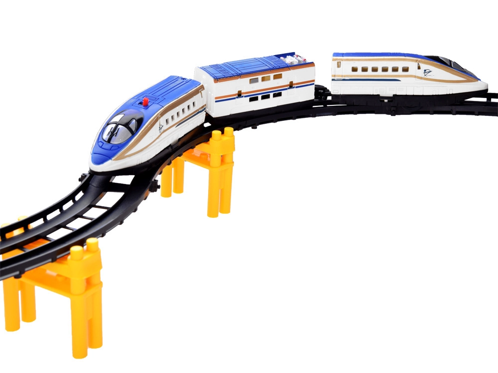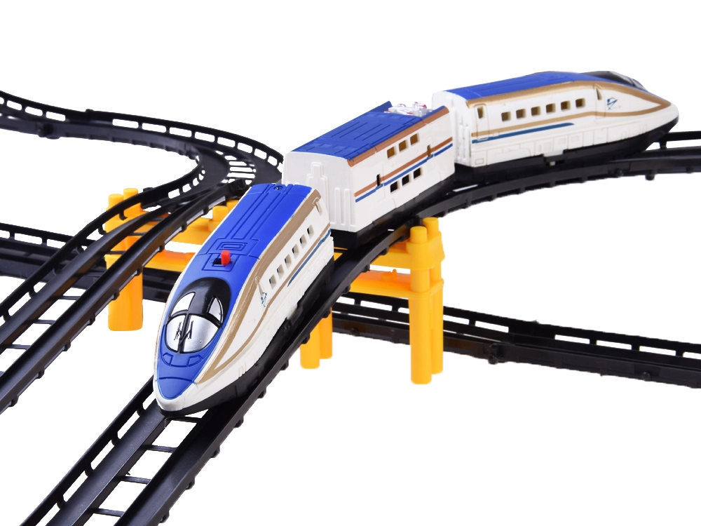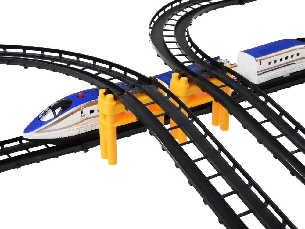 Ta plastična vlakovna proga prinaša realistično vožnjo modernega hitrega vlaka po zvišanih mostovih in ukrivljenih odsekih. Zaradi premišljene konstrukcije tirnic vlak drži smer in gladko prečka zavoje ter vzpone. Sestavljanje je hitro, intuitivno in ga zmorejo tudi otroci – vsak kos se varno zaskoči.