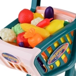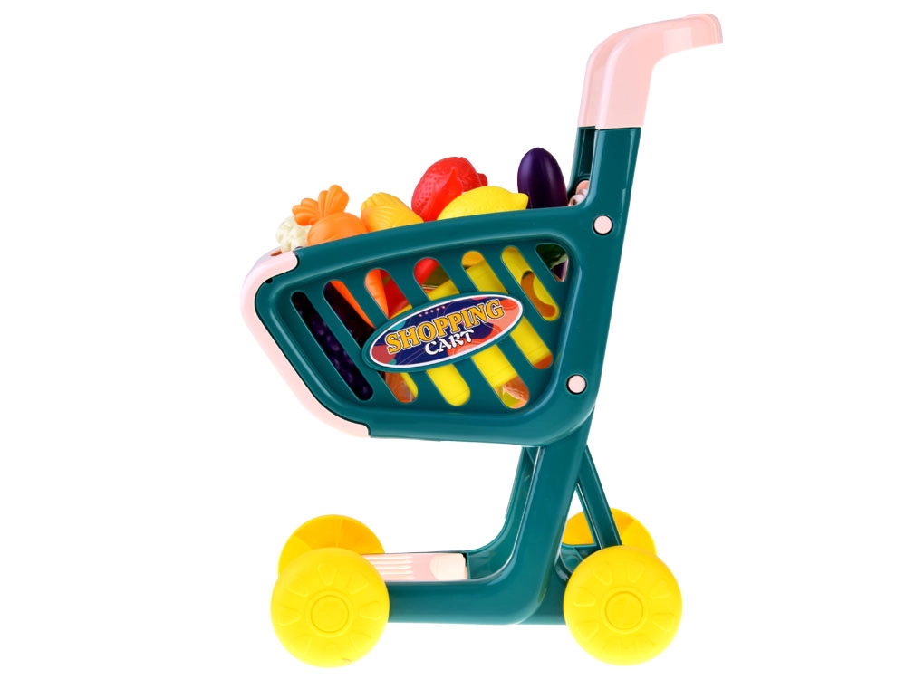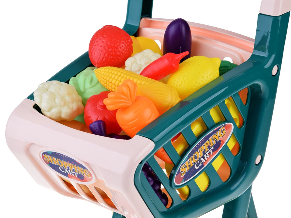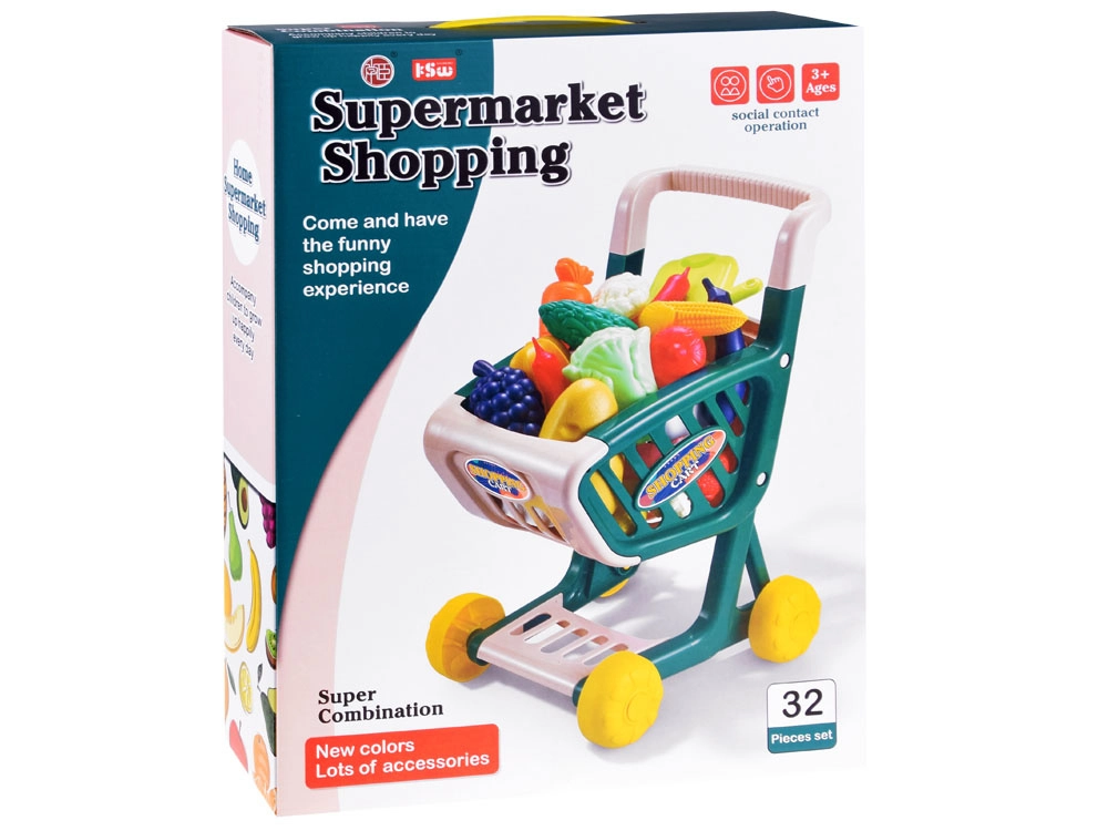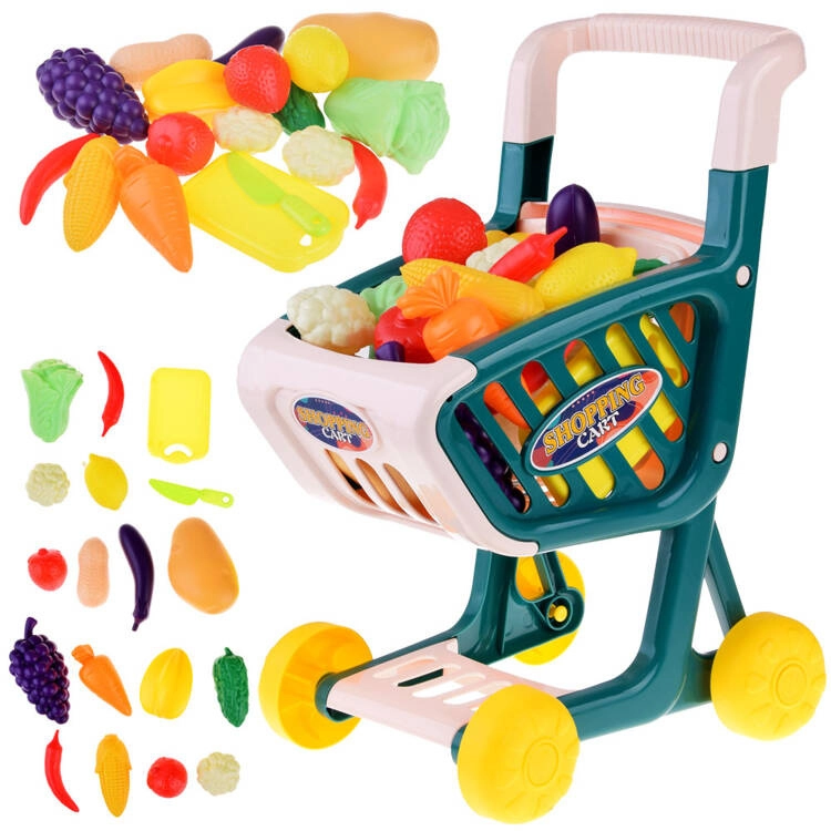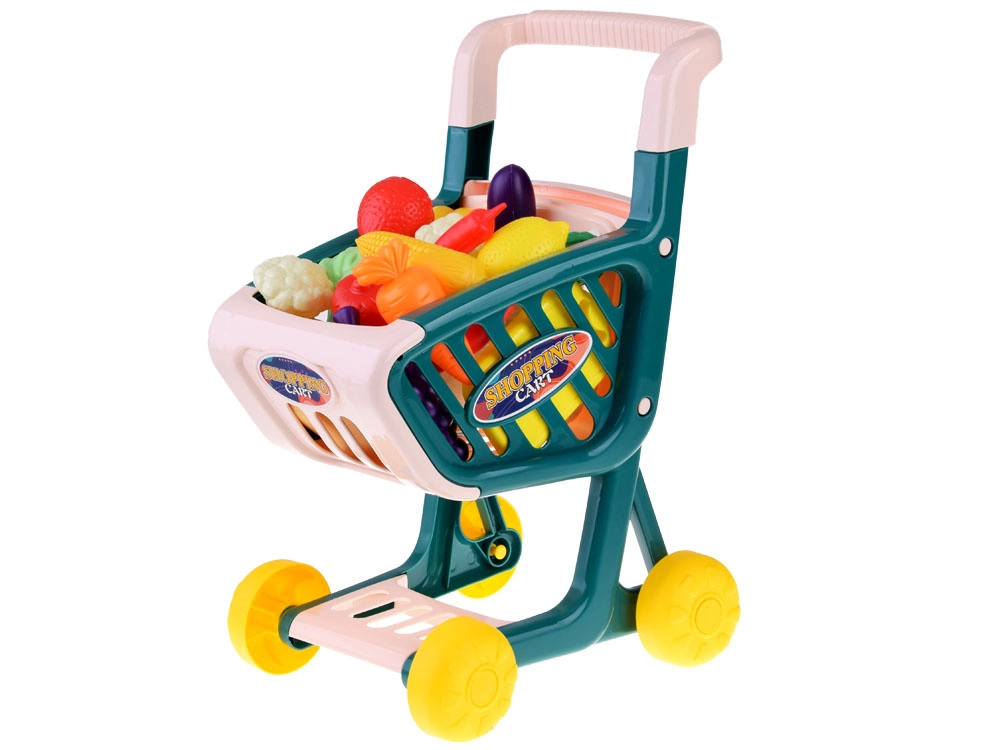 Ta otroški nakupovalni voziček je idealen za igro supermarketa. Zahvaljujoč robustni plastični košari, širokim kolesom in udobnemu ročaju ga otroci zlahka upravljajo. Priložen je raznolik komplet sadja in zelenjave v živahnih barvah, ki spodbuja ustvarjalno igro in učenje vsakdanjih opravil.