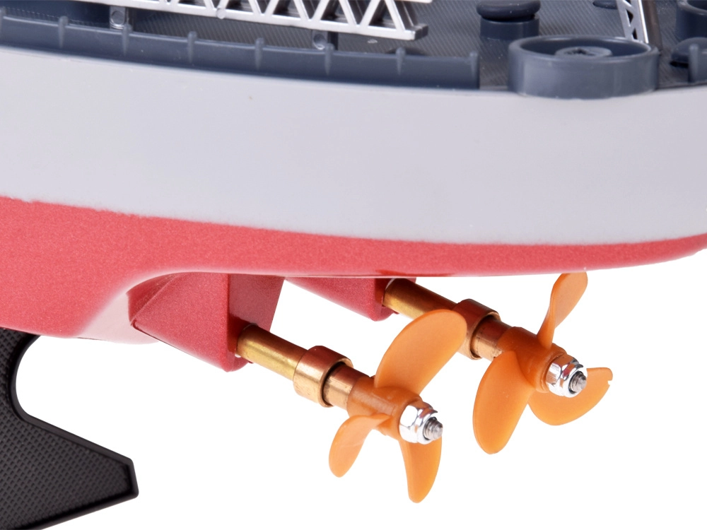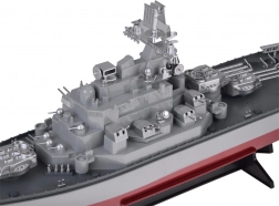 Podrobna paluba, nadgradnje, radarji in topovi dajejo modelu impresiven videz. Priloženo je stabilno stojalo, na katerem ladja lepo izstopa po vsaki plovbi.
