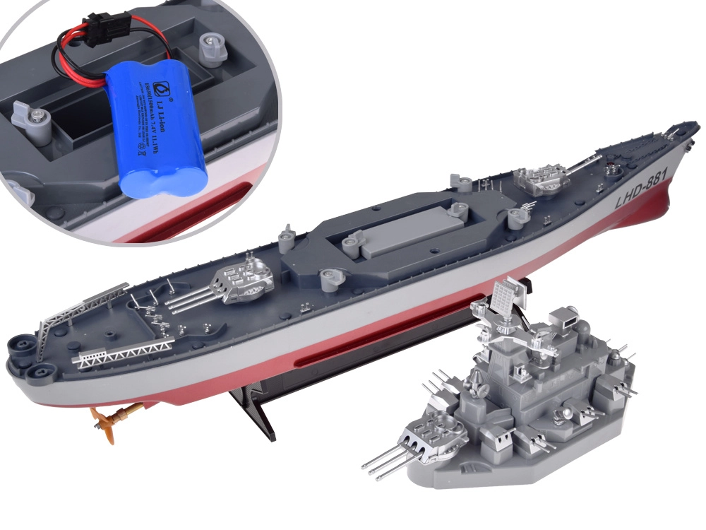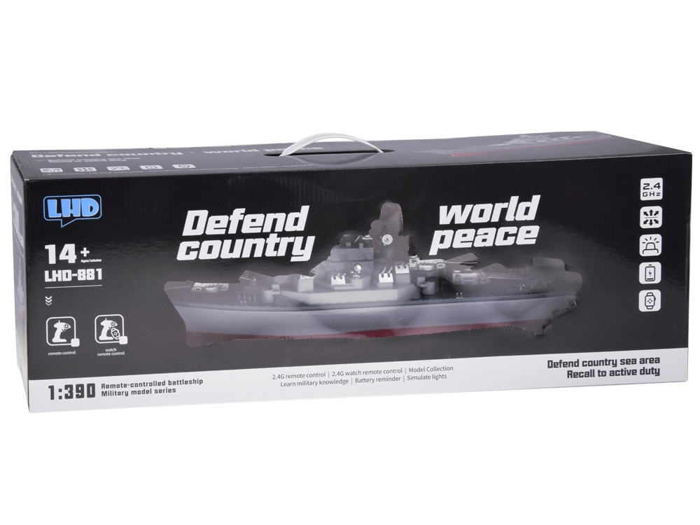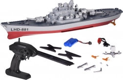 RC bojna ladja LHD-881 navduši z detaljno izdelano palubo in nadgradnjami, dvojico vijakov za zanesljiv oprijem ter realističnimi elementi. Zahvaljujoč intuitivnemu upravljanju na frekvenci 2,4 GHz lahko udobno plujete tudi z več modeli v okolici brez motenj. Po plovbi model osušite in ga postavite na priloženo stojalo.