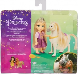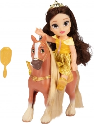 Ta čarobni komplet otroke popelje v svet DISNEYjevih pravljic. Punčka RAPUNZEL v vijolični obleki ali BELLE v rumeni obleki je pripravljena na ježo s svojim konjičkom. S priloženim česalnikom je mogoče česati in oblikovati dolge lase punčke ter konjičkovo grivo.