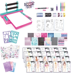 Prižgite domišljijo z oblikovalskim studiem Style4Ever Light-up. Zahvaljujoč LED osvetljeni podlagi lahko otroci zlahka prerisujejo silhuete in ustvarjajo izvirne modne kombinacije. Set je zasnovan tako, da spodbuja ustvarjalnost, fino motoriko in občutek za stil.
