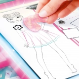 V paketu najdete vse, kar mali modni oblikovalec potrebuje: modele za prerisovanje, šablone, potiskane liste in rolice, samolepilne tkanine, barvne svinčnike, flomaster in kamenčke z nalepkami za popolno okrasitev. Vstavite 3× AAA baterije in ustvarjanje se lahko začne.