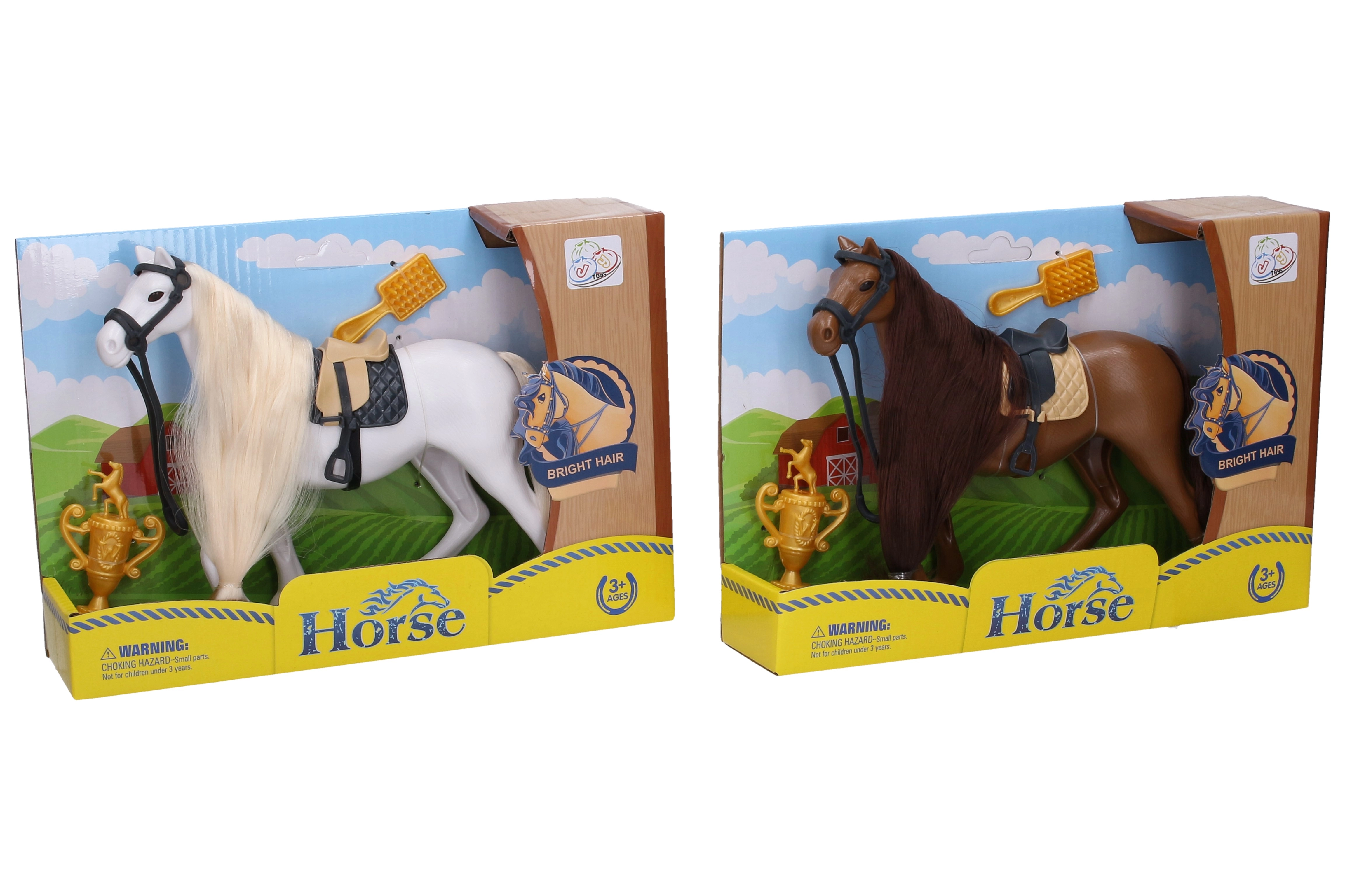 Odkrijte čar jahalnega sveta s tem podrobno izdelanim konjičkom velikosti 19 cm. S sedlom in uzdo je pripravljen na ježo, medtem ko trofeja spodbuja tekmovalnost, krtača pa otroke nauči skrbi za njihovega živalskega prijatelja.
