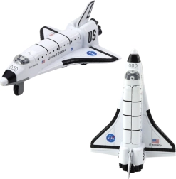 Kompakten kovinski raketoplan bo navdušil otroke, ki jih fascinira potovanje v vesolje in raziskovanje galaksij. Natančni detajli in značilna silhueta, ki spominja na pravi orbiter, prebujajo domišljijo in navdihujejo k ustvarjanju lastnih zgodb. Robustna izvedba brez ostrih robov zagotavlja varno in dolgotrajno zabavo doma in na prostem.