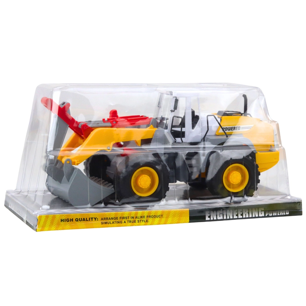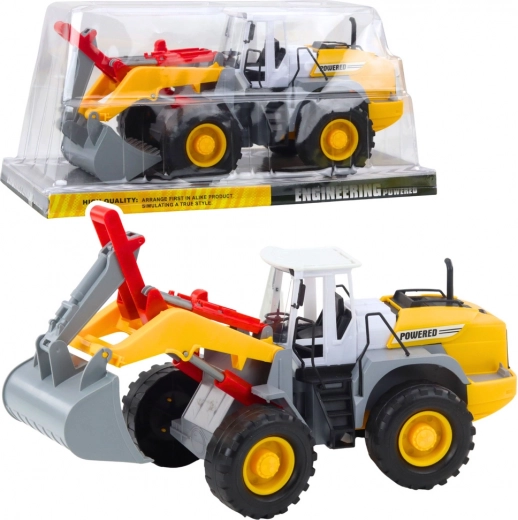 Realistični gradbeni nakladač–bager iz kakovostne plastike bo razveselil vsakega malega graditelja. Zahvaljujoč vztrajniku in premičnemu sredinskemu zglobu je enostaven za upravljanje, sprednja lopata in funkcionalni bat omogočata zajemanje in dvigovanje materiala. Odporna izvedba in dovršeni detajli zagotavljajo dolgo in varno igro doma in na vrtu.