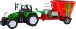 Realističen zeleni traktor s prikolico in mešalnikom krme bo navdušil male kmete in zbiratelje. Ponaša se z velikimi dimenzijami, vzdržljivimi materiali in pogonom na potisk za gladko vožnjo. Podrobna izdelava in funkcionalna prikolica z rdečim mešalnikom podpirata kreativno tematsko igro in razvoj domišljije.