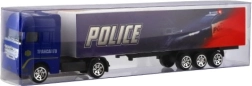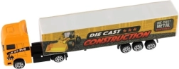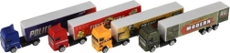 Odkrijte podrobno izdelan tovornjak s prikolico, ki ne sme manjkati v nobeni zbirki avtomobilčkov. Kovinska kabina daje modelu realističen videz in večjo vzdržljivost, medtem ko plastični dodatki ohranjajo nizko težo za enostavno upravljanje. Zahvaljujoč prostemu teku zadošča lahek potisk, da se tovornjak gladko zapelje.