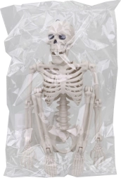 Realistična plastična figurica okostnjaka bo razveselila male in velike ljubitelje strašljivih igrač. Ponuja učinkovit videz, varno izvedbo za otroke od 3 let in praktično pakiranje v vrečki.