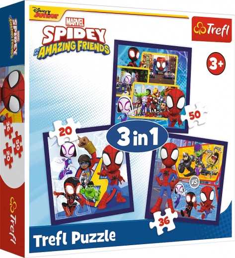 Razveselite male oboževalce superjunakov in dinozavrov z zabavnim kompletom sestavljank 3v1 z motivi Spideyja. Tri različne zahtevnosti – 20, 36 in 50 kosov – otrokom omogočajo napredovanje korak za korakom in izboljševanje svojih spretnosti.