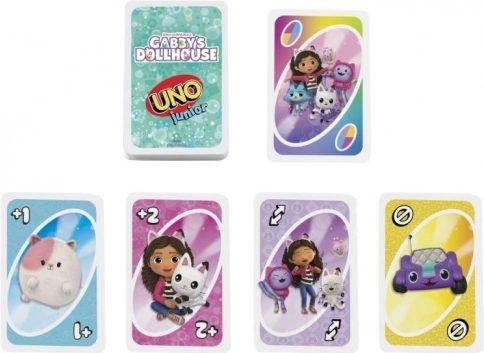 - Komplet kart UNO Junior z motivom Gabby’s Dollhouse (barve in videz kart se lahko razlikujejo)