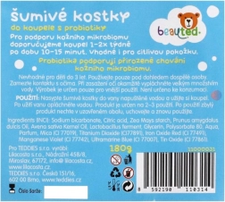 Vrzite eno ali več kock v toplo vodo in opazujte, kako šumijo, nežno obarvajo vodo ter sproščajo nežne negovalne sestavine. Barvite kocke v vodi ustvarijo mavrični učinek in vsako kopel spremenijo v sproščujoč in igriv trenutek.