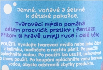 Spremenite umivanje v zabavo! Oblikovalno milo ima mehko, plastično konsistenco, s katero lahko otroci modelirajo in se igrajo, medtem ko se higiensko umivajo. Je nežno do otroške kože, dermatološko preizkušeno in zahvaljujoč posodici z zapiralnim pokrovom ostane dolgo sveže in mehko. Izdelek češke izdelave.