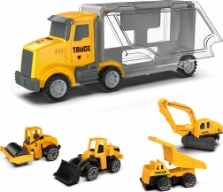 V pakiranju najdete tovornjak in štiri različna gradbena vozila, s katerimi bodo otroci obvladali vse naloge od prevoza do izkopavalnih del. Set je odličen za razvoj motorike, domišljije in timske igre.
