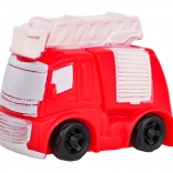 Del seta je mehko silikonsko gasilsko avtomobilček z gladkim vrtenjem koles, varno za majhne roke. Deli so iz kakovostnih materialov v živih barvah, po sestavi pa set ne zavzame veliko prostora – idealno za otroško sobo.