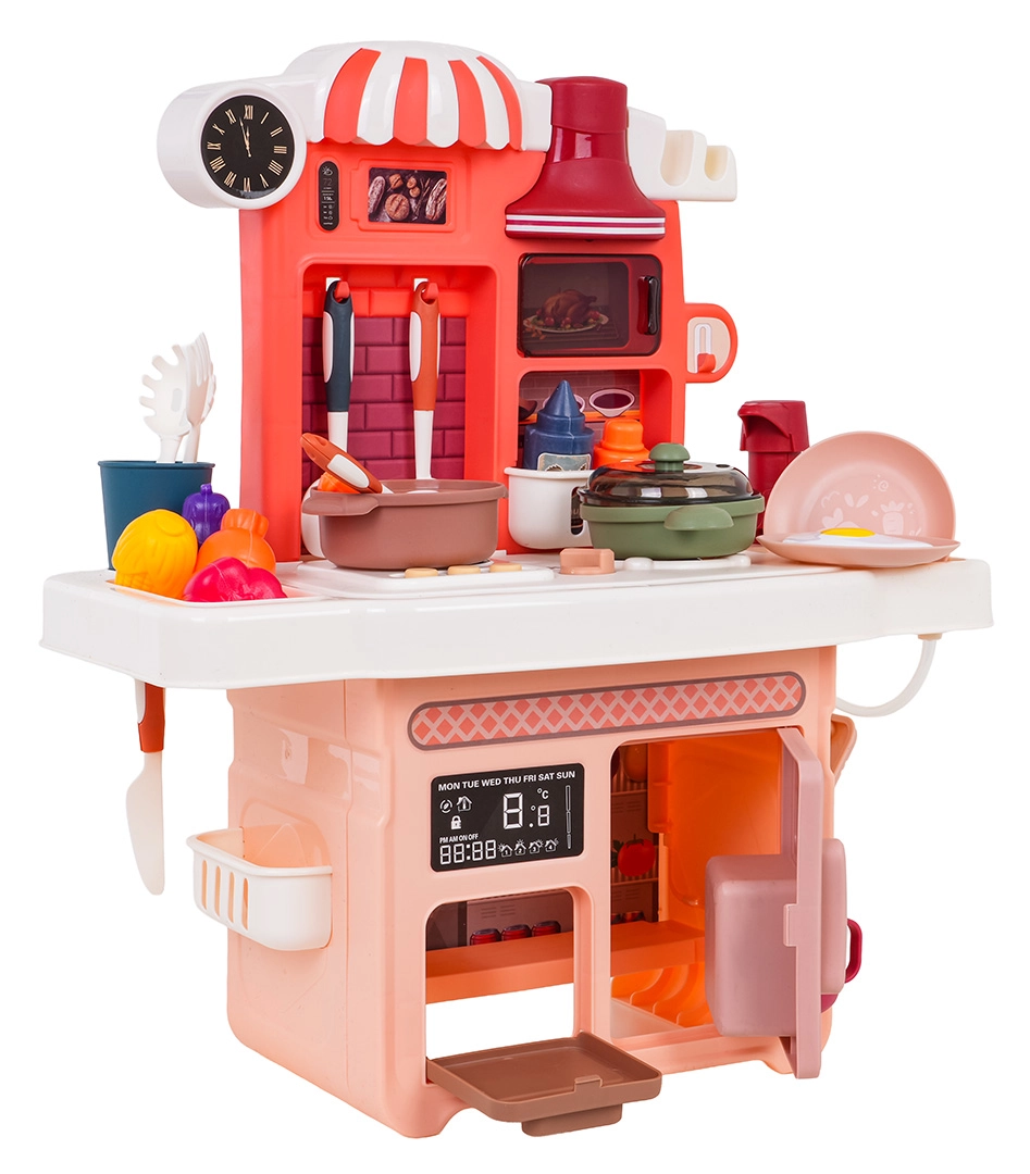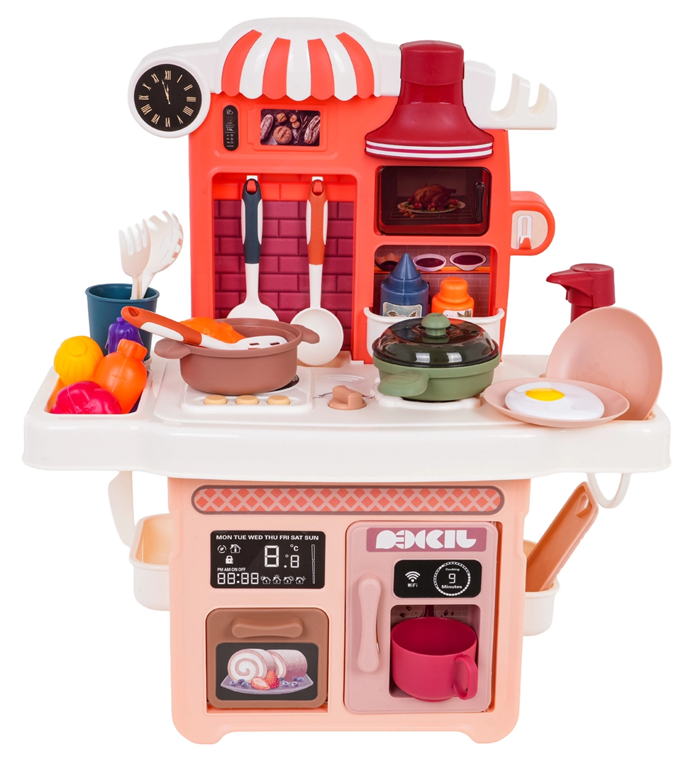 Ta kakovostno izdelana otroška kuhinjica v živahnih barvah spodbuja domišljijo, igro vlog in fino motoriko. Ob obračanju gumbov se zaslišijo pristni zvoki kuhanja in hkrati zasvetijo osvetljeni gorilniki. S pritiskom na gumbe kuhinjica predvaja pesmice, izštevanke in varnostna navodila, ki otroke na zabaven način učijo pravilnih navad.