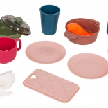 Ponev, lonec s pokrovko, krožnički, skodelice, kuhinjski pripomočki in različna živila (riba, zelenjava, jajce) razvijajo ustvarjalnost in socialne veščine.