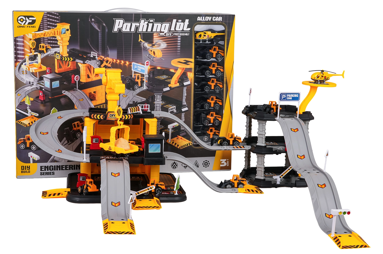 Trietažno parkirišče s heliportom je povezano s trietažnim gradbiščem z rampami in žerjavom. Otroci lahko nemoteno prehajajo med conami in ustvarjajo lastne gradbene scenarije.