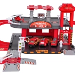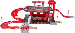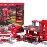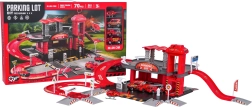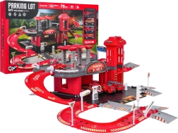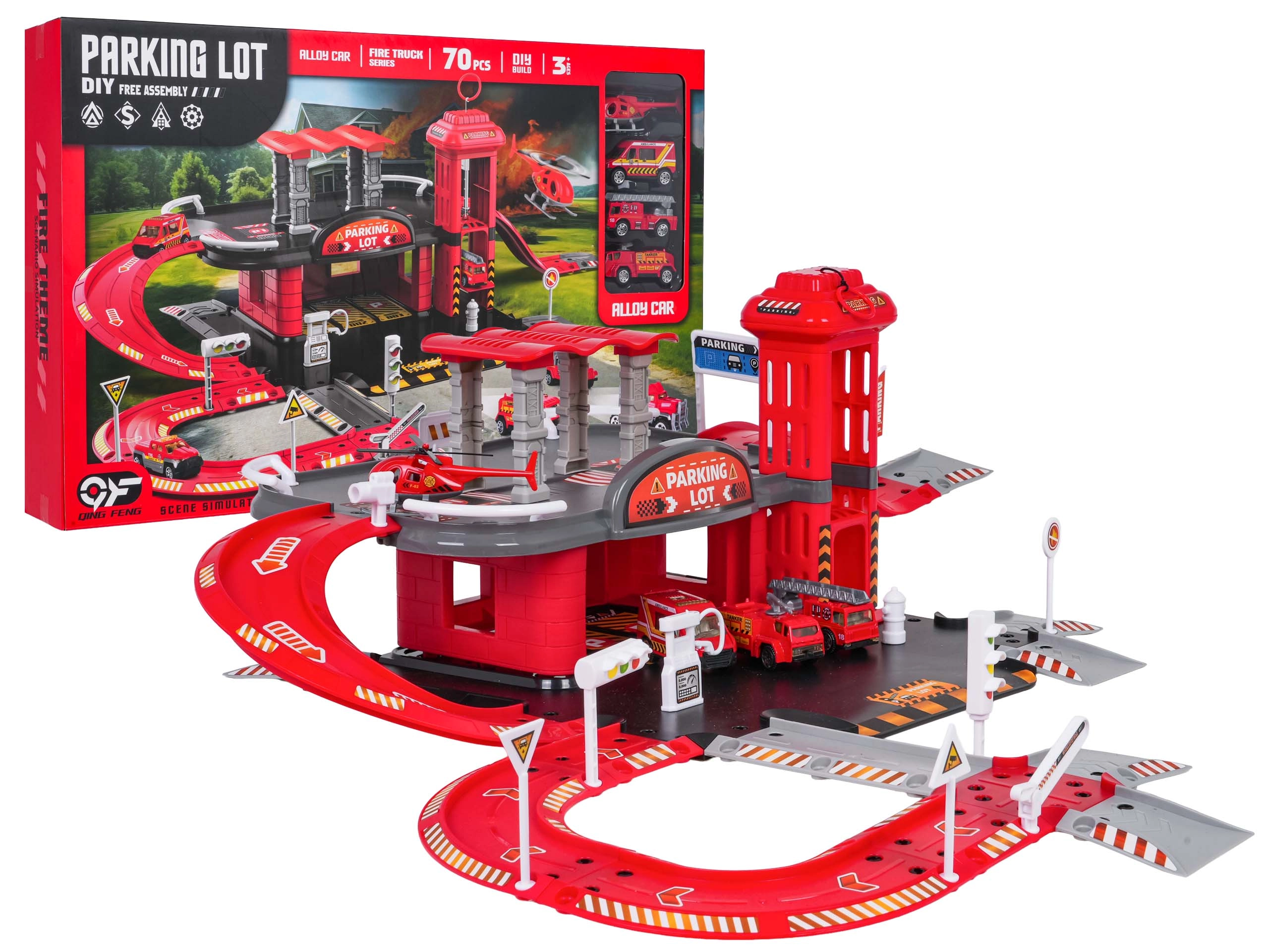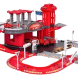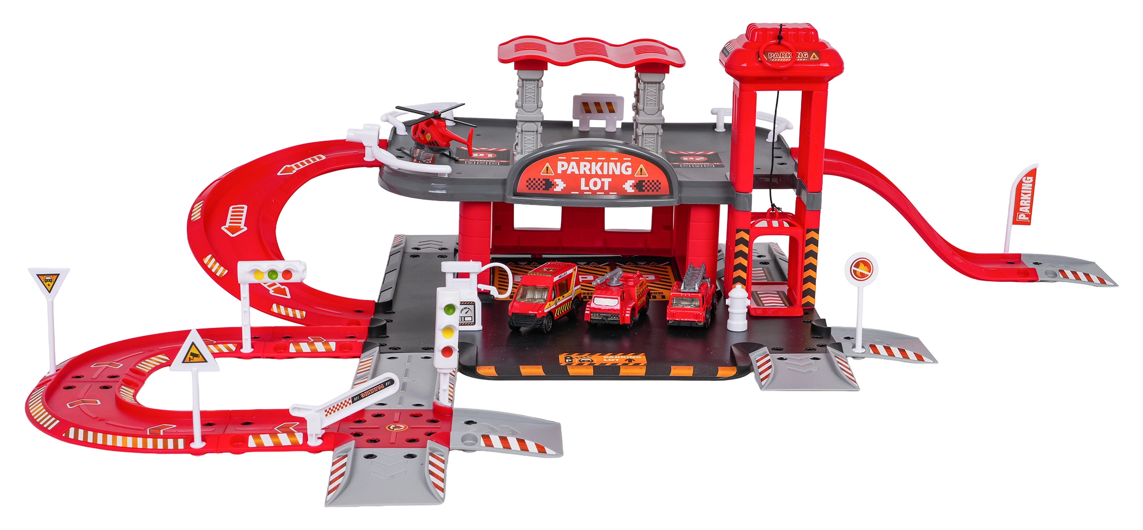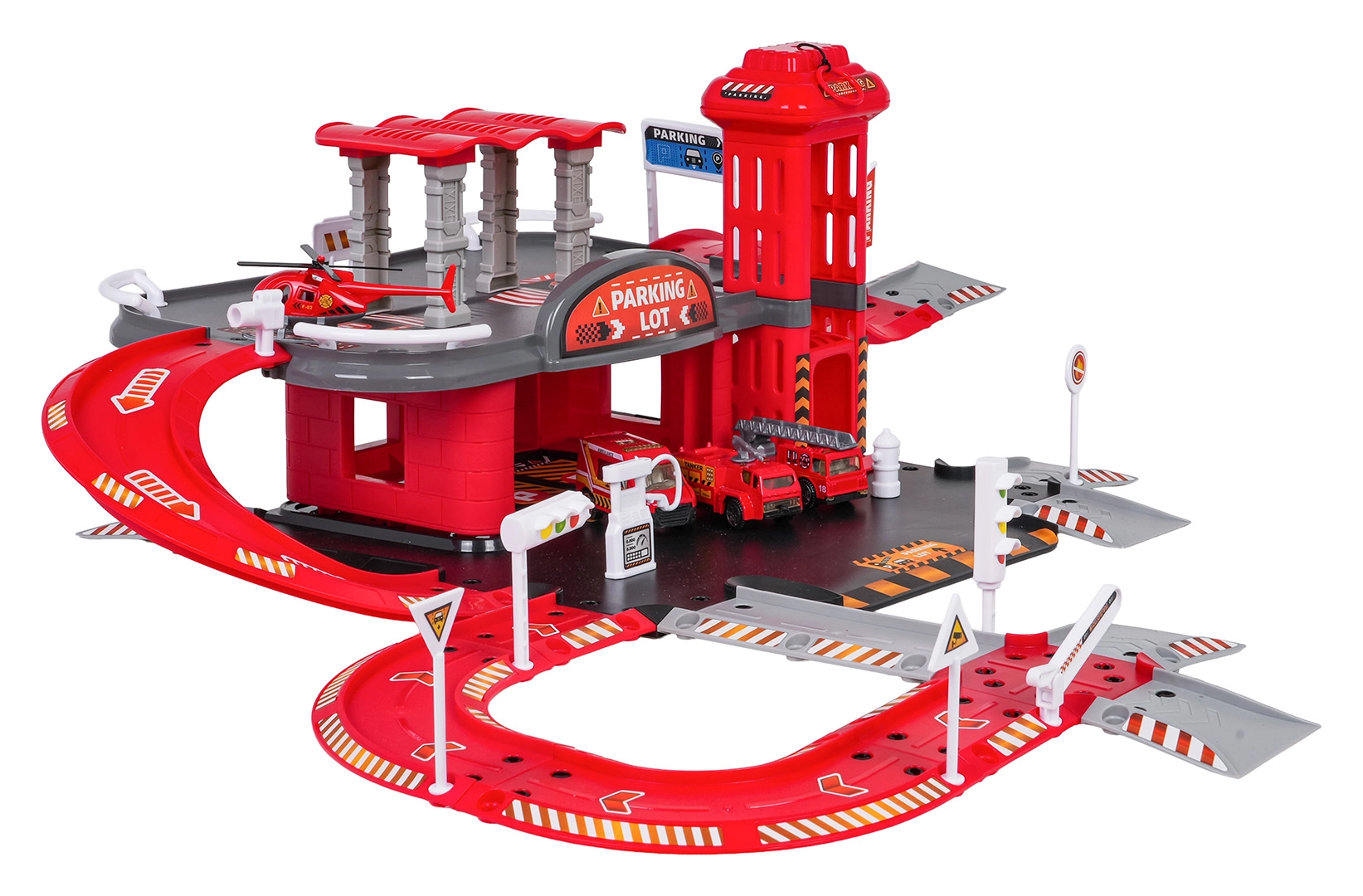 Ta podrobno izdelan komplet gasilske postaje združuje zabavo in razvoj veščin. Otroci lahko točijo gorivo na bencinski črpalki, vozijo po cesti, z ročnim dvigalom zapeljejo vozilo v nadstropje in parkirajo na označenih mestih. Iz zgornjega nadstropja se vozila vračajo z dvigalom ali se spustijo po spiralni rampi.