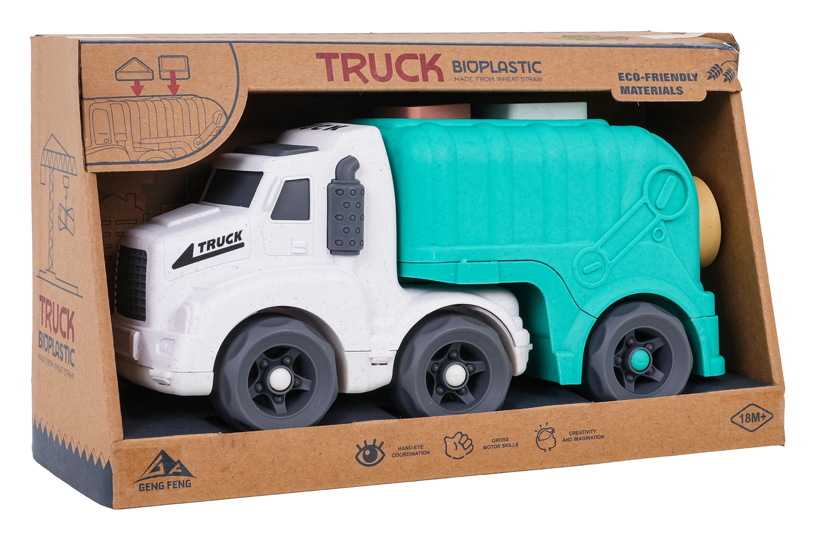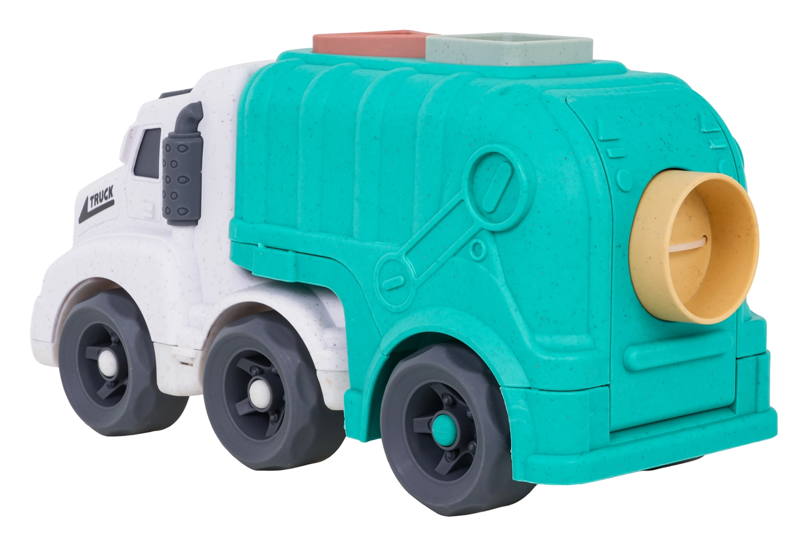 Odkrijte zabavno in trajnostno igračo za najmlajše – smetarsko vozilo iz kakovostnega bioplastika. Zahvaljujoč sortirniku na strehi in zadnji loputi otroci urijo prepoznavanje oblik in barv, medtem ko kolesa, ki se vrtijo, spodbujajo gibljivo, ustvarjalno igro. Odpirajoča se zadnja loputa omogoča hiter dostop do kock in enostavno ponavljanje igre.