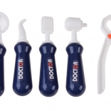 Odpiralni model čeljusti in samostojen »zob« učita pravilne navade nege zob. Ogledalce, krtačka in zobozdravniški instrumenti spodbujajo učenje skozi igro.