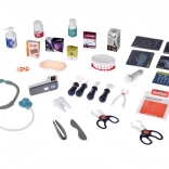 V kompletu je širok nabor dodatkov: stetoskop, termometer, zobozdravniško ogledalce z LED, pinceta, škarje, krtačka, kapsule, škatlice »zdravil«, model odpirajoče se čeljusti in samostojen »zob«, EKG kartica ter rentgenske kartice. Zaradi mobilne konstrukcije in odlagalnih polic je set idealen za skupno igro in vzdrževanje reda.
