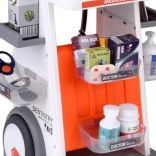 Spremenite otroško sobo v majhno ambulanto. Interaktivni voziček z monitorjem »X-Ray/ECG«, svetilko, predalčki in vrtljivimi kolesi ponuja avtentično igro na zdravnika in zobozdravnika. Otroci lahko poslušajo srce, »rentgensko« pregledajo pacienta, preverijo zobe na modelu čeljusti in varno preizkusijo običajne postopke. Realistični svetlobni in zvočni učinki krepijo doživetje in motivirajo k raziskovanju.