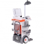 Trdna konstrukcija na kolesih, več polic in posodic za pregledno shranjevanje orodij in »zdravil«. Otroci lahko voziček zlahka odnesejo kamor koli in imajo vse pri roki.