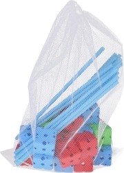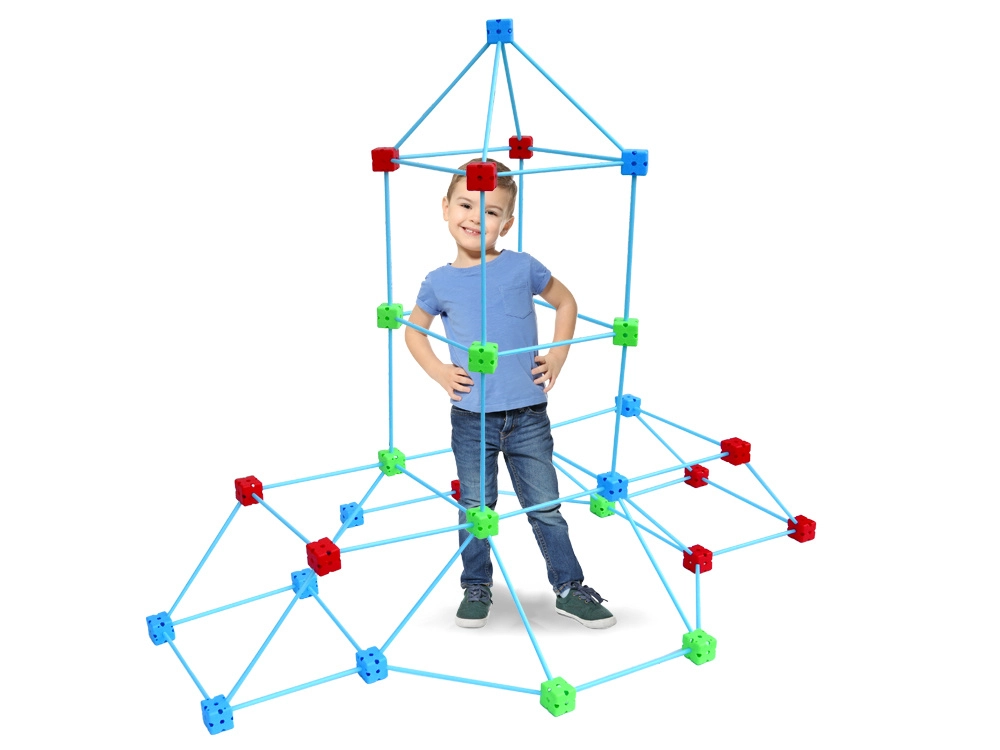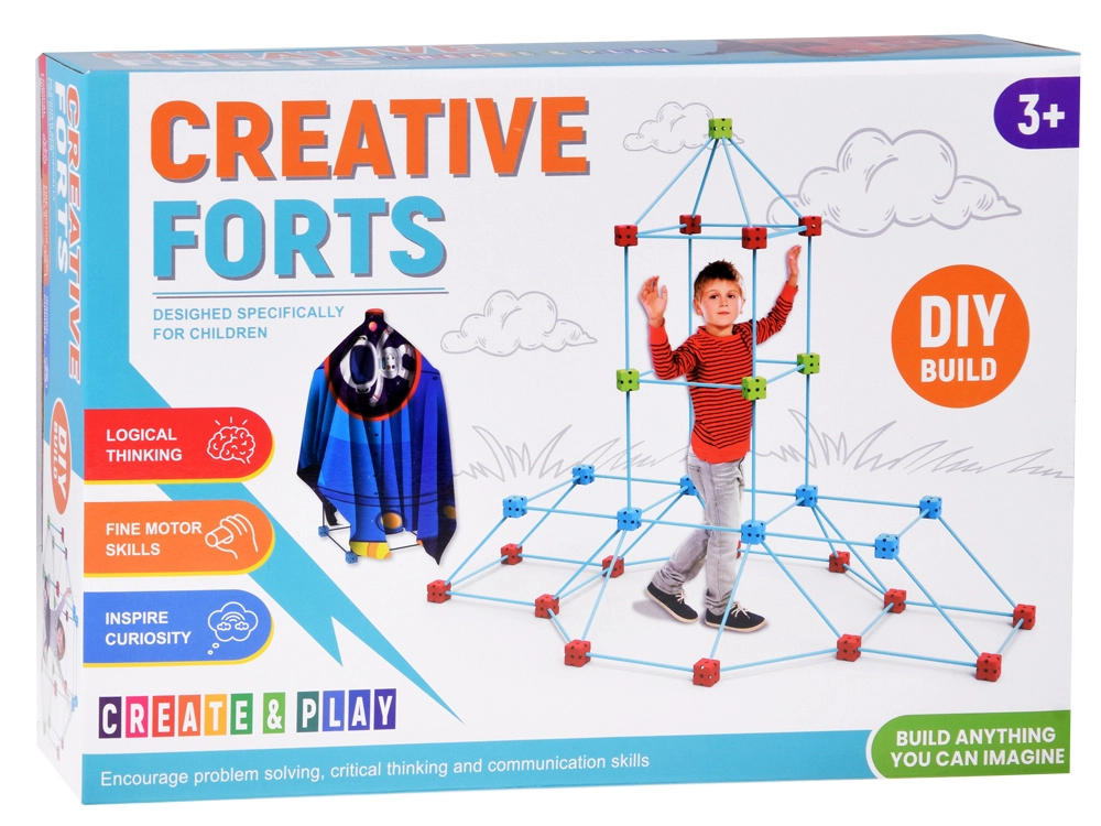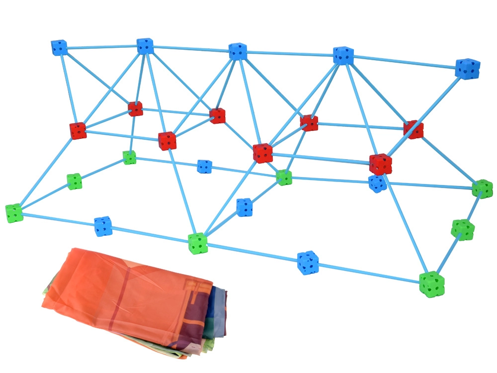 Odkrijte neskončno zabavo s tem velikim kompletom konstrukcijskih slamk in kock! Otroci zlahka zgradijo trdnjavo, hiško, stolp, iglu in svojo tajno bazo. Lahkotne paličice in čvrsti večodprtinski konektorji zagotavljajo stabilne konstrukcije, pokrivna tkanina s potiskom spremeni okvir v prijeten šotor, mrežasta vrečka pa olajša shranjevanje. Odlično za razvoj ustvarjalnosti, prostorskega razmišljanja in fine motorike.