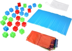 - 58× paličica (pribl. 38 cm dolžine, pribl. 1 cm premera), 29× spojna kocka (pribl. 5 × 5 × 5 cm), 1× tekstilna ponjava s potiskom (pribl. 230 × 155 cm), 1× mrežasta shranjevalna vrečka