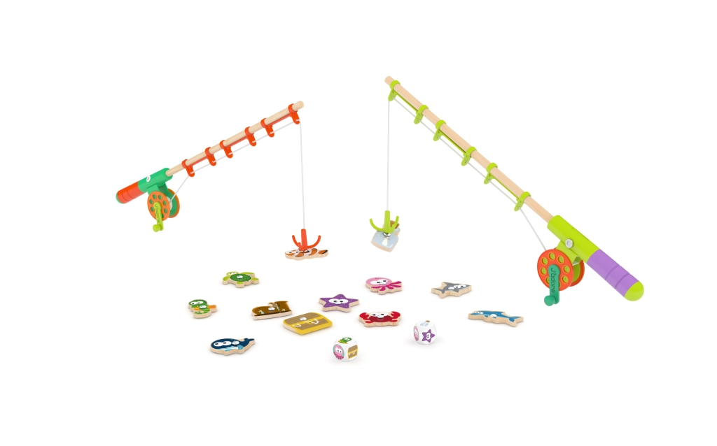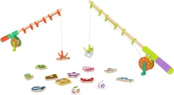Lesena igra Ribolov je priljubljen izobraževalni pripomoček in igrača v enem. Otroci z magnetno palico lovijo pisane ribice, razlikujejo barve in vadijo prijem. Zahvaljujoč trdnemu lesu in gladko zbrušenim robovom je igra varna in prijetna na dotik.