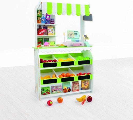 Odkrijte čar igre trgovine z lesenim setom, ki prinaša realističen občutek nakupovanja in prodaje. Robustna konstrukcija iz naravnega lesa zagotavlja dolgo življenjsko dobo in varno igro, medtem ko eleganten dizajn polepša vsako otroško sobo.