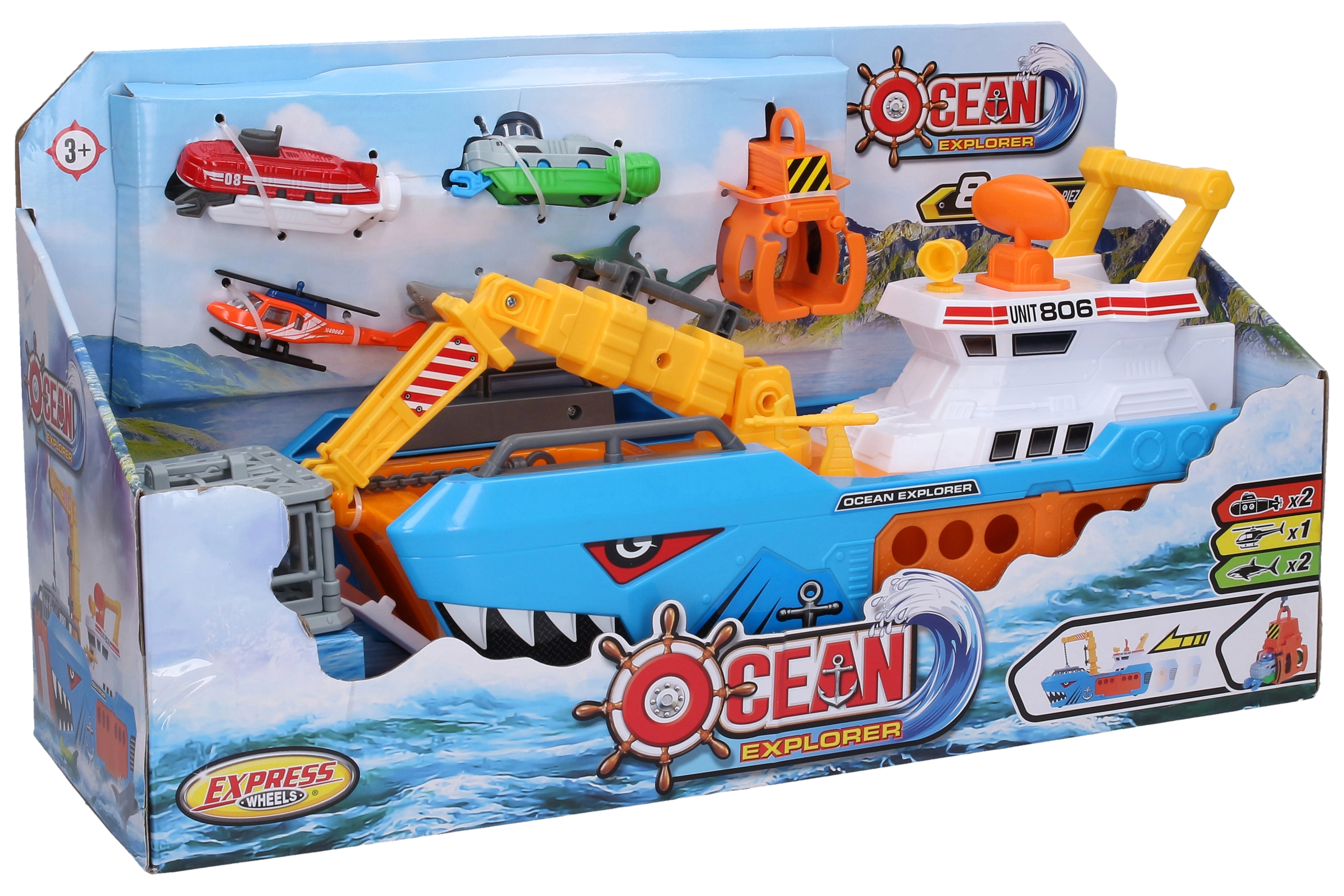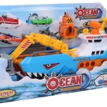 Igralni set Ladja za lov na morske pse prinaša otrokom napeto akcijo na vodi. S tematskimi dodatki si lahko ustvarijo lastne zgodbe o raziskovanju oceana in pogumnem lovu na morske pse.