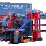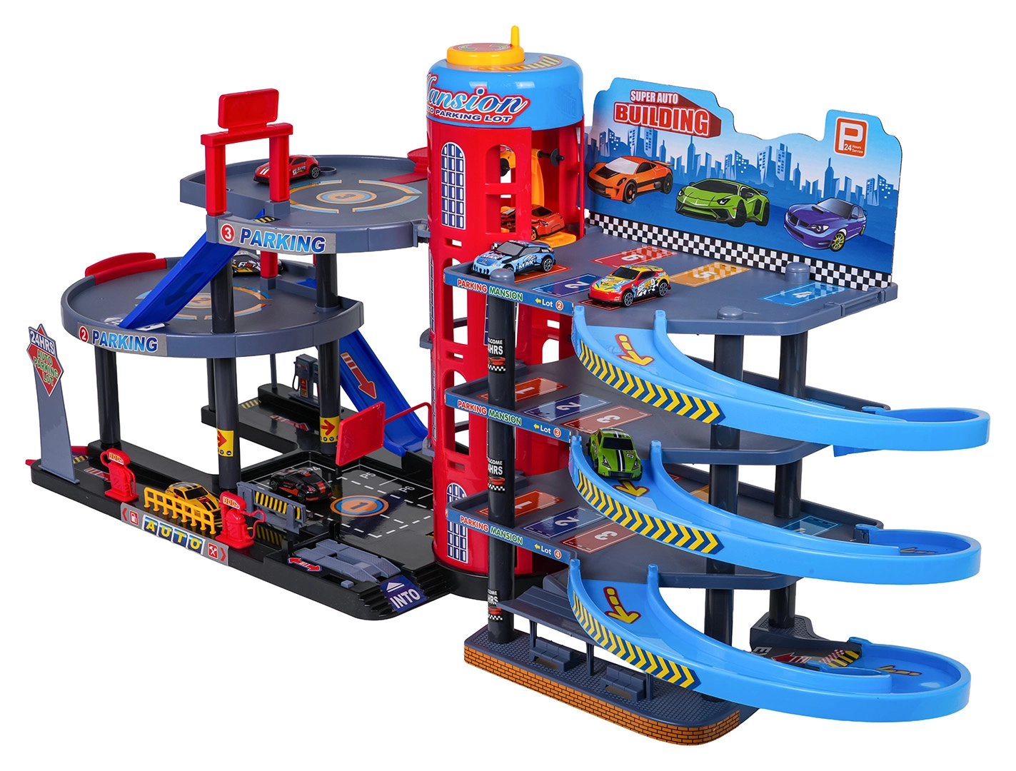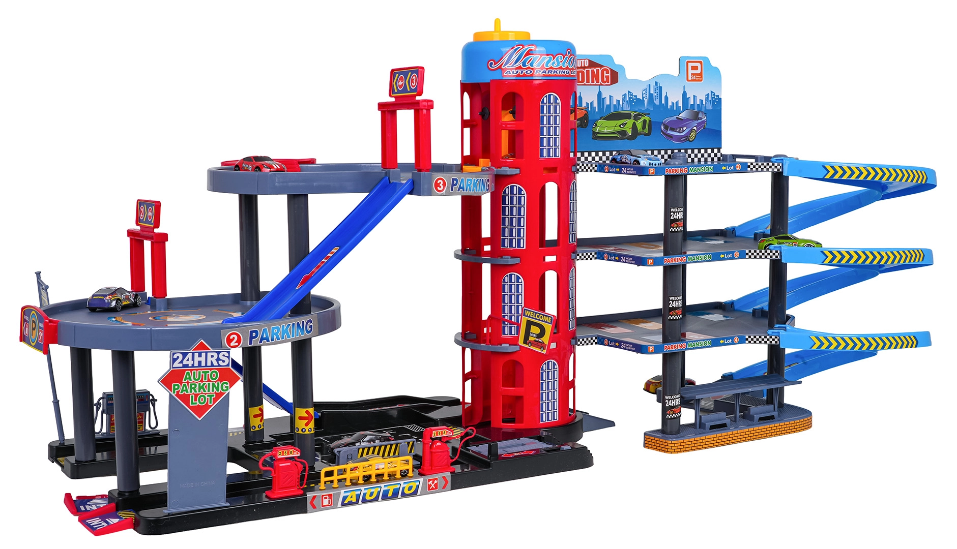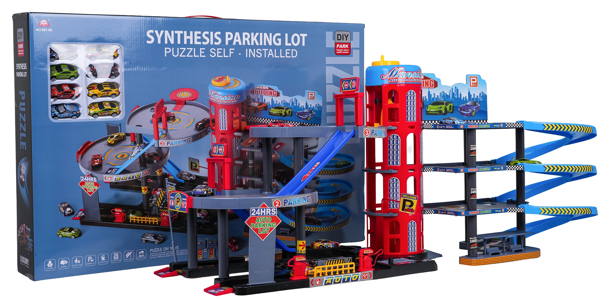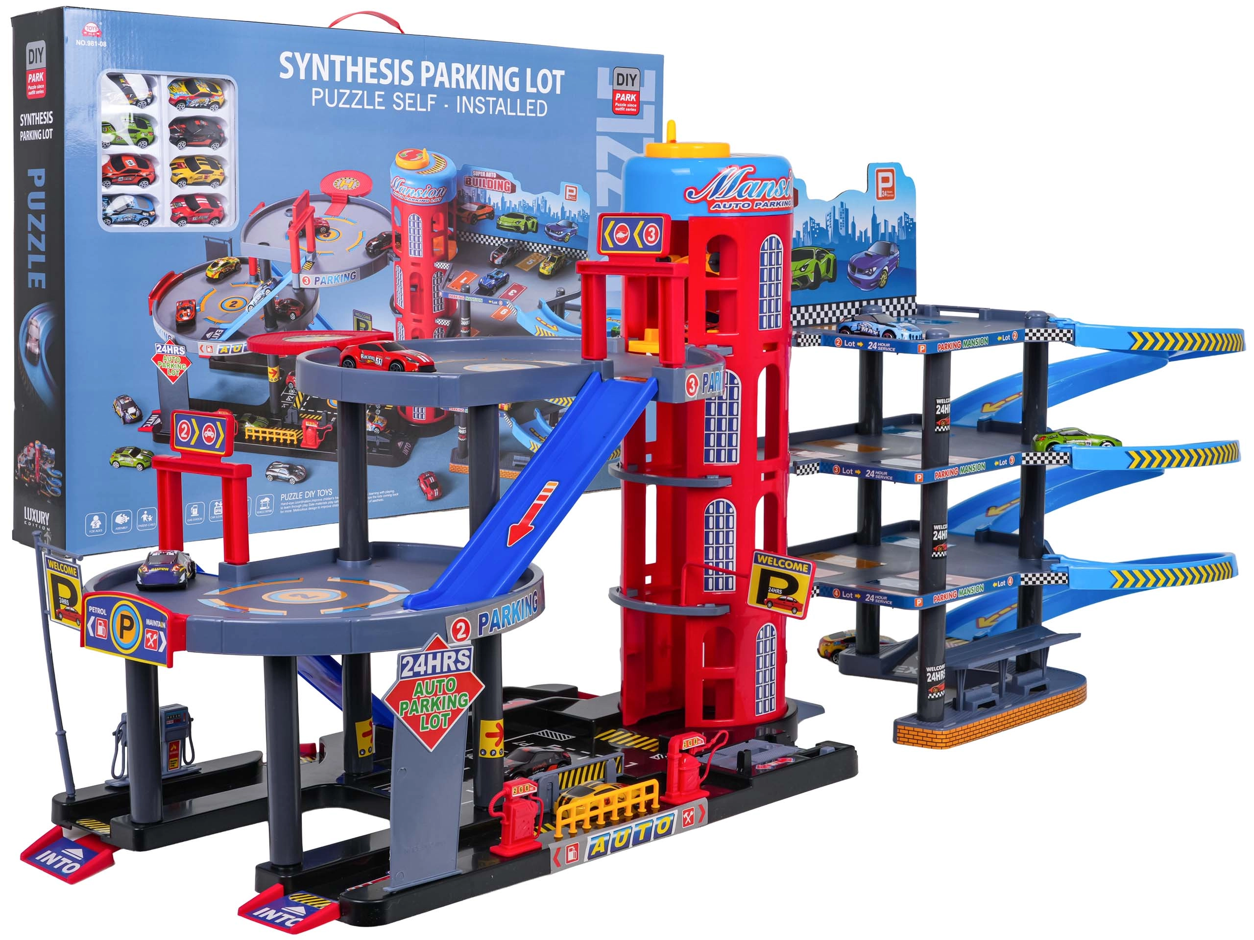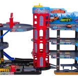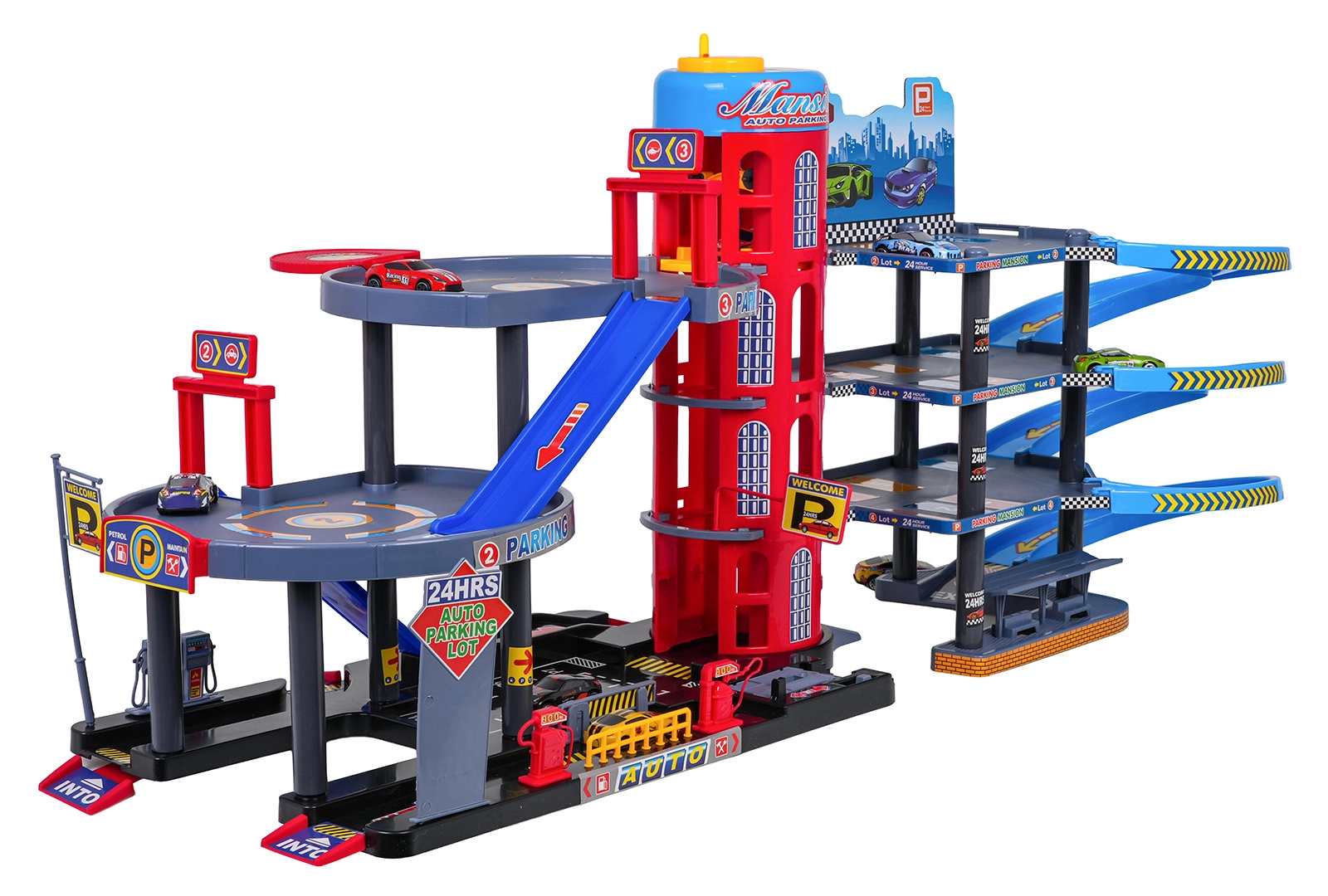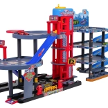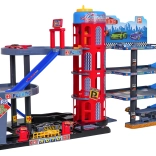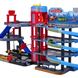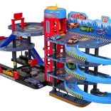 Velika večnivojska parkirna garaža z dvigalom in dirkalnimi rampami bo navdušila male voznike od 3 let. Vključuje 4-nivojsko parkiranje, funkcionalno dvigalo, spiralne spuste, bencinsko črpalko in heliport. V paketu najdete 8 kovinskih avtomobilčkov in barvite nalepke za še več zabave.