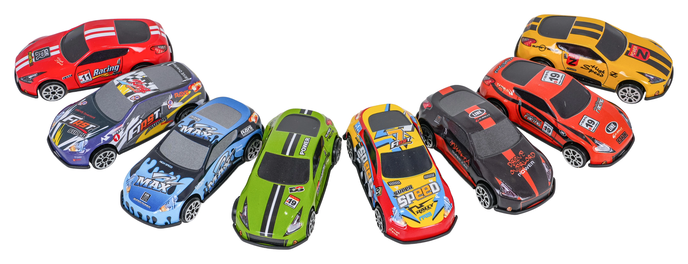 - 8 avtomobilčkov s kovinsko karoserijo v različnih barvah