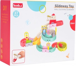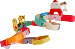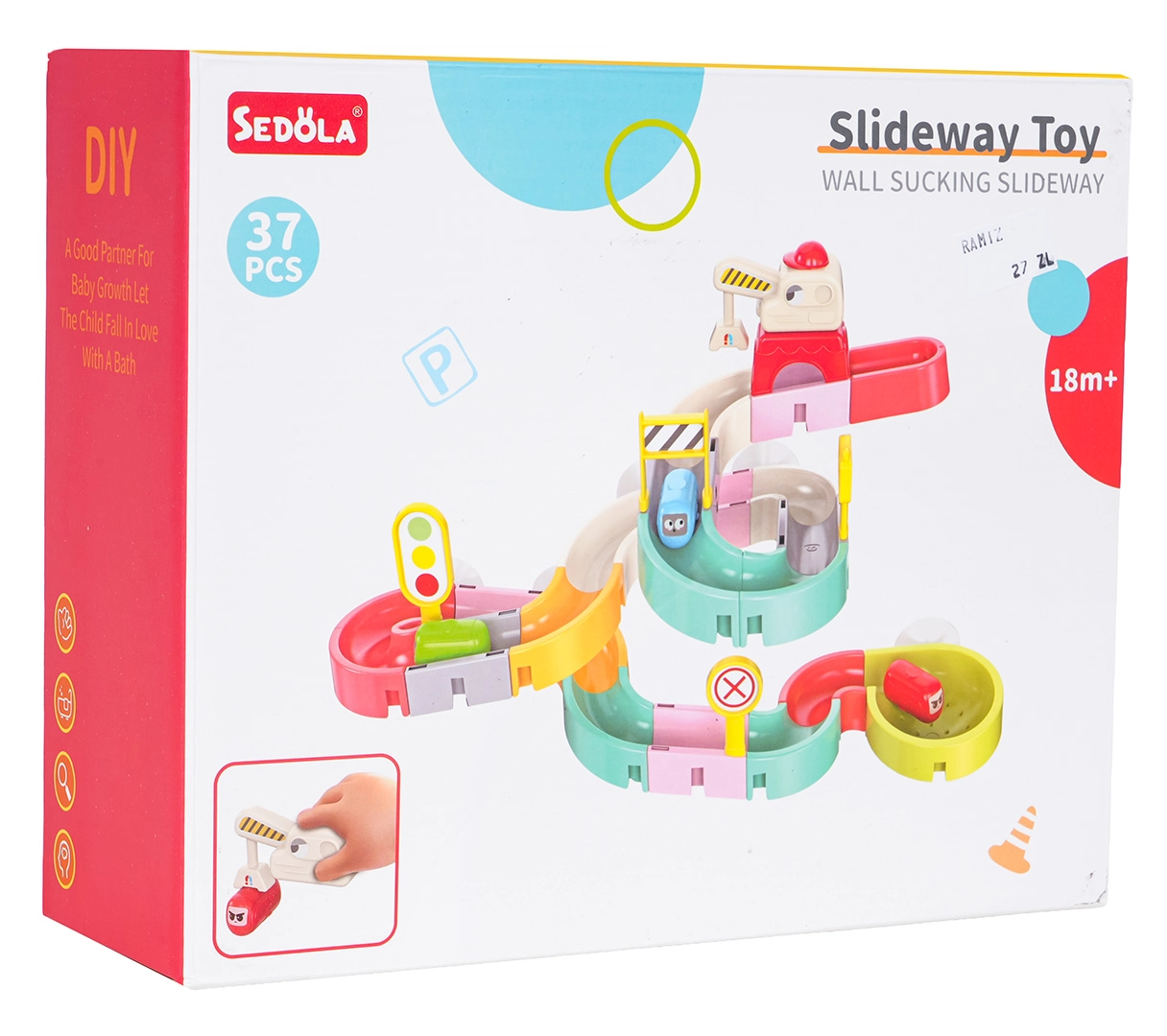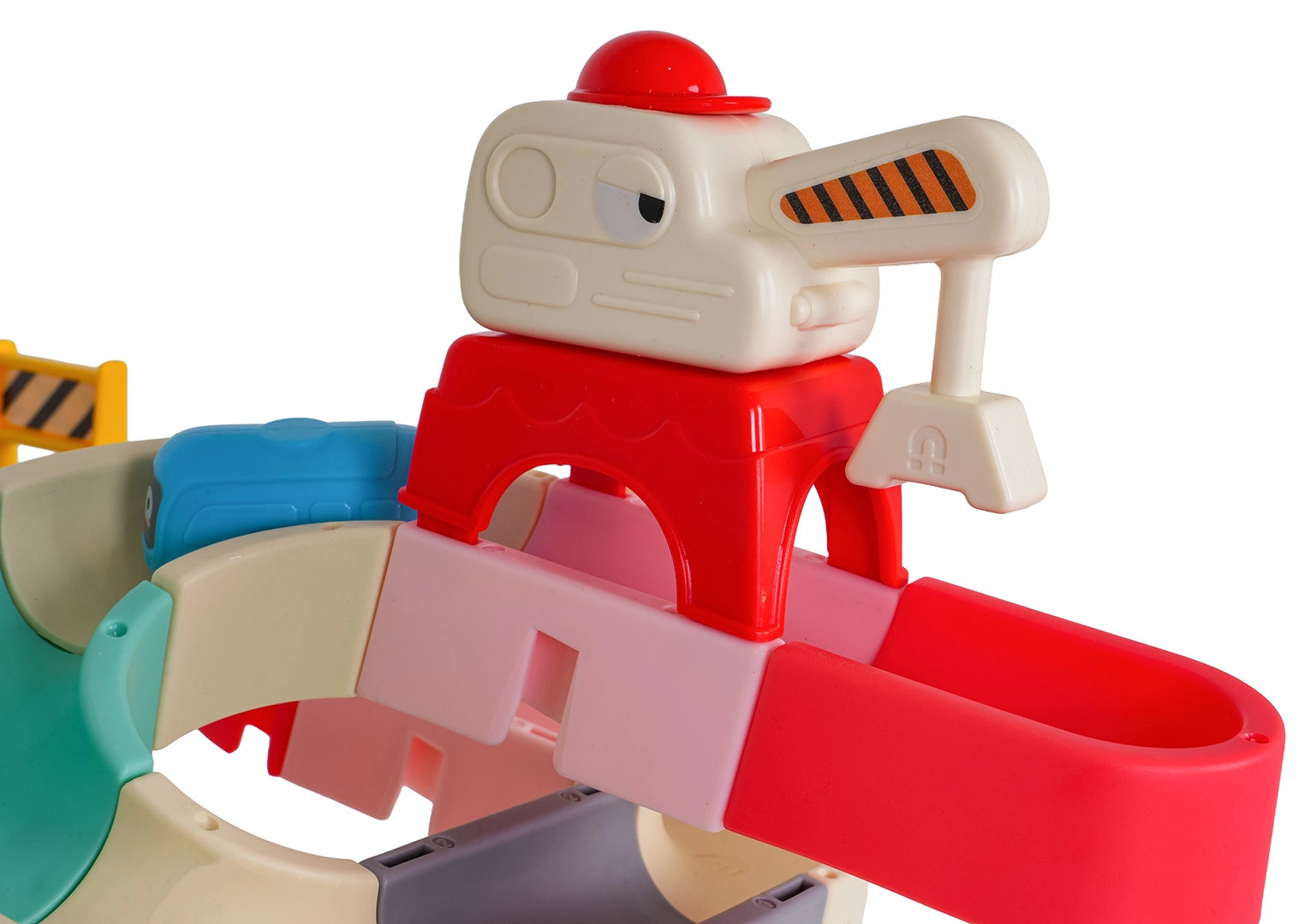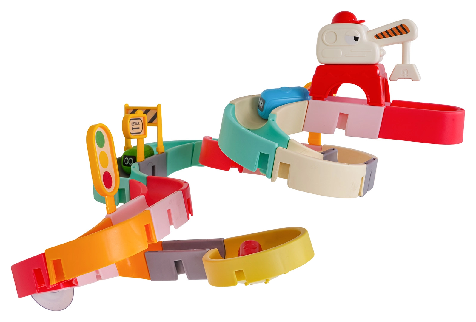 Zabava je varna in raznolika: kakovostna plastika brez ostrih robov, močni priseski za stabilnost in živahne barve, ki otroke spodbujajo k ustvarjanju vedno novih prog. Priložene so tudi prometne znamke, zapornice in nalepke za še več ustvarjalnosti.