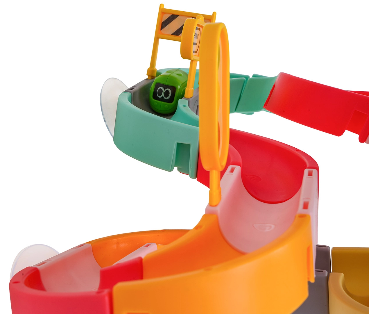 Zgradite si lastno vodno dirko kar v kadi. Modularni deli se zlahka povezujejo in jih je zaradi priseskov mogoče pritrditi na ploščice, kad ali druge gladke površine. Dovolj je, da na start postavite mini avtomobilček in ga polijete s prho – voda ga potisne po progi vse do vode.