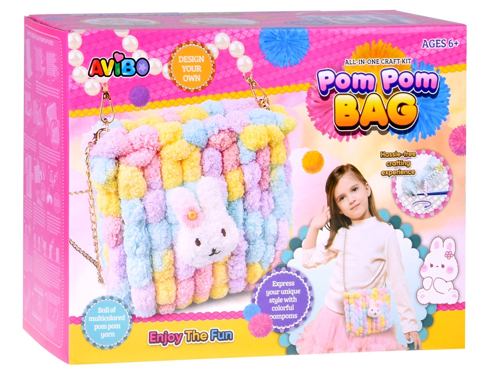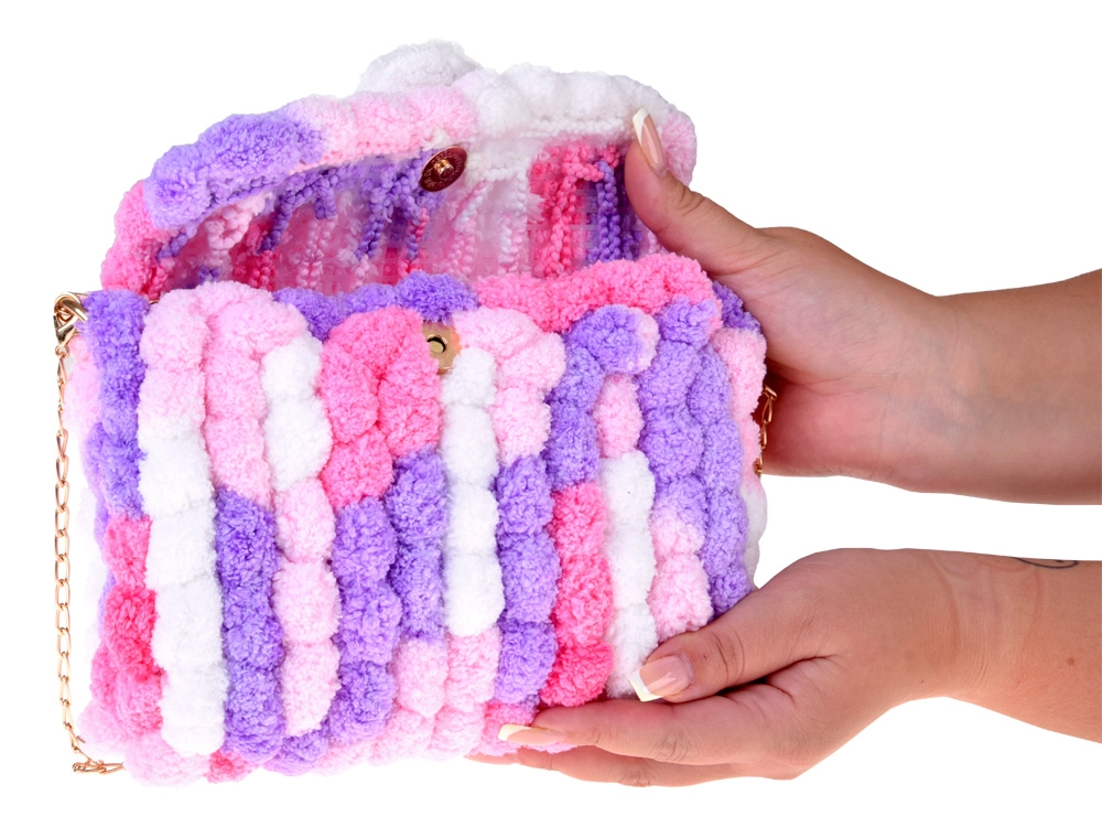 Komplet DIY Pom Pom Bag spremeni čas ustvarjanja v zabaven projekt s čudovitim rezultatom – mehko, pisano torbico s puhasto teksturo, prijetno na dotik. Končano torbico lahko nosite čez ramo zahvaljujoč kovinski verižici ali jo uporabite kot prikupen dodatek na izletih in v mestu.