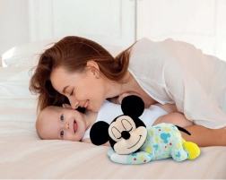 Ta mehak pliško MICKEY MOUSE je idealen spremljevalec za uspavanje in mirne trenutke čez dan. Združuje pomirjujoče svetlobne učinke z melodijami in zvoki, ki posnemajo naravno okolje za dojenčka. Barvna svetloba s spreminjajočo se intenziteto (kromoterapija) pomaga umiriti, zmanjšati napetost ter ustvariti prijetno vzdušje.