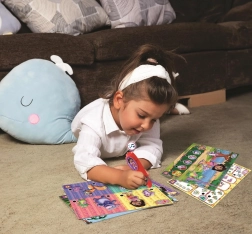 Komplet z 200 kvizi je idealen za predšolske otroke, ki želijo na zabaven način odkrivati svet. Interaktivno pero nudi takojšnjo povratno informacijo – ob pravilnem odgovoru zasveti in odda zvok, kar otroke motivira, da nadaljujejo in se učijo samostojno.