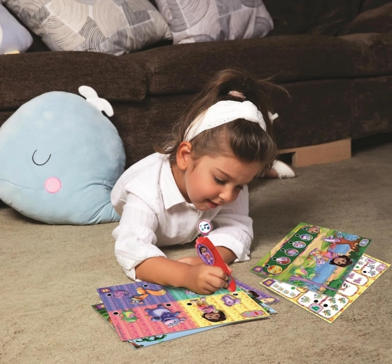 Odkrijte zabaven način učenja z igro Moje interaktivno pero – 200 kvizov DORA raziskovalka. Otroci vadijo like, barve, številke, količine in prostorsko orientacijo, z interaktivnim elektronskim peresom pa takoj izvejo pravilni odgovor – pero se zasveti in zapiska. Igra spodbuja samostojno učenje, razvija logiko, pozornost in zbranost ter pritegne z priljubljenimi liki iz DORE raziskovalke. Baterije AAA so priložene v pakiranju.