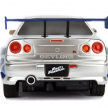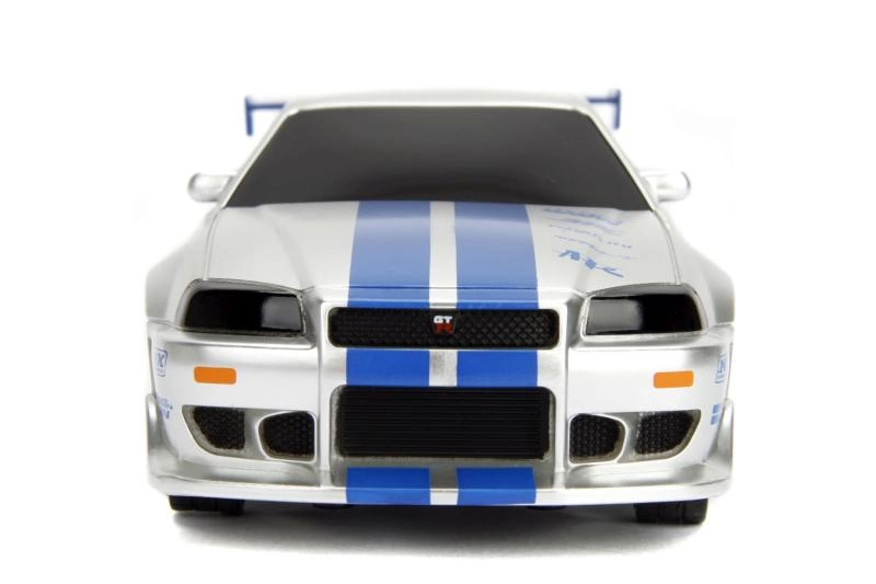 Ta podrobno izdelan RC model Nissan Skyline GT‑R (BNR34), navdihnjen z Bryanovim vozilom iz filma Hitri in drzni, prinaša realistično vožnjo in avtentičen videz. Zahvaljujoč frekvenci 2,4 GHz lahko vozite z več modeli hkrati brez motenj, medtem ko Turbo funkcija poskrbi za hitre sprinte in odzivnost.