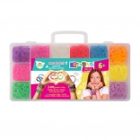 Ustvarjajte svoje barvite zapestnice, prstane in okraske s tem popolnim kreativnim kompletom. Vsebuje statvasto orodje za prepletanje, barvne elastike in praktičen organizator, zato je vse pregledno pri roki in pripravljeno za ustvarjanje. Komplet spodbuja kreativnost, fino motoriko in kombiniranje barv ter vzorcev. Zahvaljujoč plastičnemu zaboju s pregradami je idealen tudi za potovanja.
