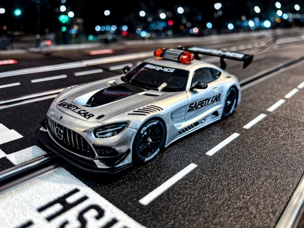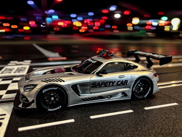 Obogatite svojo stezo z vrhunskim modelom Mercedes-AMG GT3 Evo v vlogi Safety Car za sistem Carrera Digital 132. Realistični detajli, funkcionalne luči in opozorilna svetilka ustvarijo pravo dirkaško vzdušje, natančna izdelava pa zagotavlja odlične vozne lastnosti in zanesljiv stik s stezo.