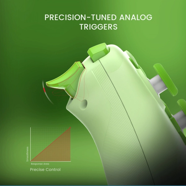 Krmilnik ponuja 20Hz Turbo na ključnih gumbih in večfunkcijski gumb M za hitro nastavitev intenzivnosti vibracij, razporeditve ABXY in mrtvih con palic. Dva motorčka v ročajih zagotavljata bogat haptični odziv, da se še bolj potopite v igro.