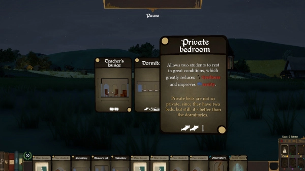 Strategija, upravljanje in pripovedne odločitve gredo z roko v roki. Najemajte kakovostne učitelje, skrbite za dobrobit študentov in se pogajajte z frakcijami fantazijskega sveta. Progresivna kampanja prinaša nove lokacije, dogodke in izzive – od orkovskih vpadov do inšpekcijskih pregledov.